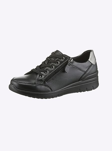 Der Sneaker von airsoft modern+ aus Lederimitat bringt Sie bequem an Ihr Ziel. Einmal mit Schnürsenkel perfekt an Ihren Fuß angepasst, ist ein schneller Einstieg durch den seitlichen Reißverschluss garantiert. Textiles Innenfutter. Innensohle aus Lederimitat. Flexible, leichte PU-Laufsohle mit ca. 30 mm Absatz. Weite F., Farbe: Farbbezeichnung: schwarz, Material: Obermaterial: Lederimitat, Innenmaterial: Textil, Details: Verschluss: Reißverschluss, Sohle: Innensohlenmaterial: Lederimitat, Laufsohlenmaterial: Polyurethan (PU), Laufsohlenprofil: leicht profiliert, Passform/Schnitt: Schuhweite: Normal (Weite F)