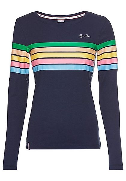 Das Shirt mit Wow-Effekt Mit dem Langarmshirt von KangaROOS bist du stilsicher unterwegs und gibst deinem Look den letzten Schliff. Das Streifenmuster macht das Shirt nicht nur zum Lieblings-Basic für deine Outfits, sondern bringt auch Dynamik und eine sportliche Note mit sich. Dieses Shirt hat einen Rundhalsausschnitt und ist hüftbedeckend sowie sehr figurbetont geschnitten, sodass deine Silhouette schön in Szene gesetzt wird. Die Rippware aus Baumwolle ist angenehm zu tragen und passt sich deinem Körper an. Lass deiner Kreativität freien Lauf Damit der Freizeit-Look modisch ist, empfiehlt es sich eine Jeans und eine coole Jacke dazu zu tragen. Weiße Sneaker passen auch gut dazu. Femininer wird die Kombi mit einem Midi- oder Maxirock. Für einen guten Start in den Tag — in deinem neuen Lieblingsshirt von KangaROOS.