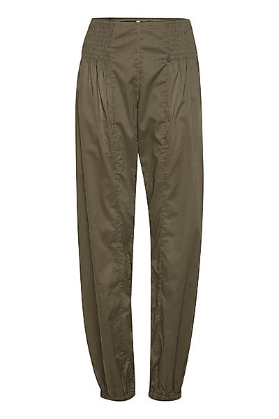 Locker geschnittene Hose mit geradem Bein, elastischem gerafftem Bund und elastischen Beinabschlüssen. Leichter, halbtransparenter Stoff.