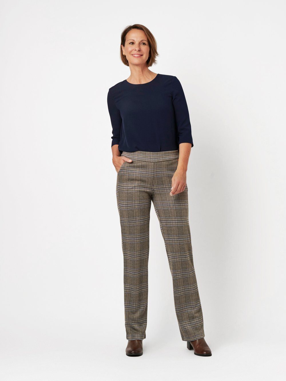 Bequem und trotzdem stilvoll: Die Hose »Scarlet« von RELAXED bringt mit ihrem entspannten Schnitt und dem dezenten Karomuster frische Lässigkeit in Ihre Looks. Der bequeme Schlupfbund sorgt für maximalen Komfort, während der gerade, lockere Beinverlauf für eine zeitgemäße Silhouette steht. Ob im Homeoffice, beim Stadtbummel oder entspannt im Alltag – dieses Modell ist ein unkomplizierter Stylingpartner mit modischem Understatement. Ideal für Frauen, die auf Komfort setzen, ohne auf Stil zu verzichten. PASSFORM: • Hohe Leibhöhe • Bequemer Gummizug hinten • Eingrifftaschen seitlich • Keine Taschen hinten • Normale Oberschenkelweite • Entspannter Beinverlauf • Normale Länge MATERIALBESCHREIBUNG: • Fließender, softer Jersey • Kariert • Bi-Stretch BESONDERHEITEN: • Karomuster • Bequemer Schlupfbund • Entspannter Beinverlauf