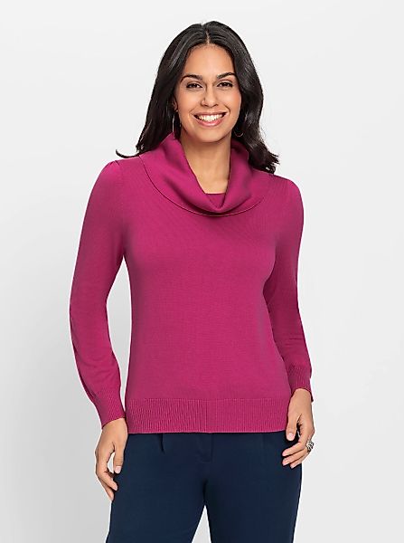 Ein kombistarker Pullover für alle Fälle! Mit halsfernem Rollkragen und verspielt angekräuselten Ärmeln. Elastische Rippbündchen an Ärmeln und Saum. Wunderbar weiche Garnmischung.