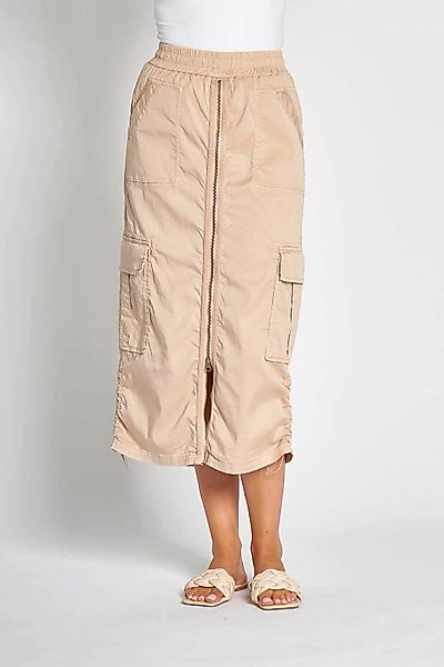 Wenn das Outfit bequem, aber gleichzeitig feminin aussehen soll, ist der Midirock der Marke Zhrill eine gute Grundlage. Durch den Abschluss mit elastischem Bund ist die Weite passgenau. Das Gesamtbild bekommt durch die praktischen Cargotaschen einen sportlichen Touch. Er ist durch die Webstoff-Qualität pflegeleicht., Material: Materialzusammensetzung: Obermaterial: 67% Baumwolle, 30% Lyocell (TENCEL™), 3% Elasthan, Materialart: Web, Materialeigenschaften: atmungsaktiv, elastisch, pflegeleicht, Pflegehinweise: Maschinenwäsche, Optik/Stil: Optik: unifarben, Farbe: Farbbezeichnung: OLIVE, Passform/Schnitt: Leibhöhe: normal, Bundabschluss: elastischer Bund, Passform: regular fit, Schnittform Länge: ca. Mitte Wade, Details: Gürtelschlaufen: nein, Applikationen: Kontrastnähte, Markenlabel, Taschen: Cargotaschen, Eingrifftaschen, Verschluss: Gummizug, Reißverschluss, Verschlussdetails: durchgehend, vorn, Besondere Merkmale: mit durchgehendem Reißverschluss vorn