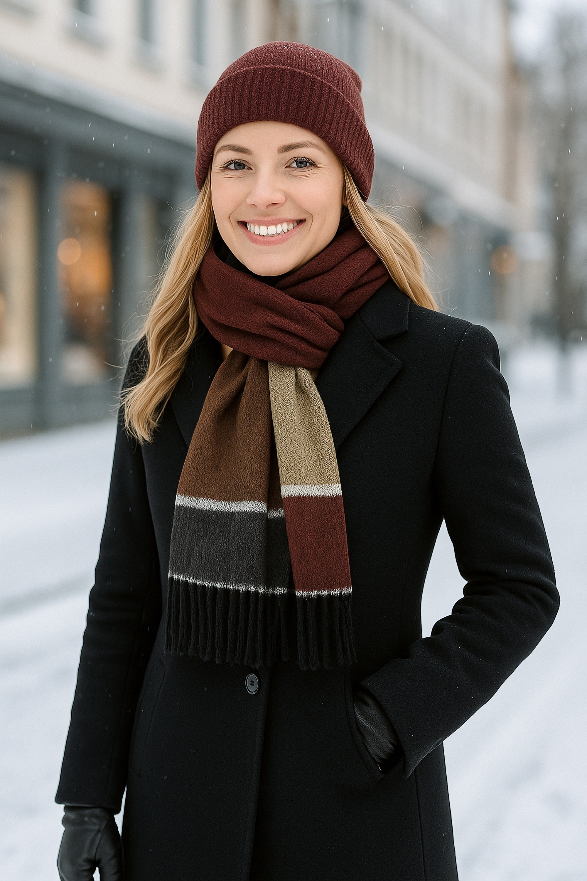 Dieser Made-in-Italy-Schal in elegantem Color-Blocking-Design verbindet klassische Elemente mit modernem Chic und ist in zwei markanten Varianten erhältlich: eine stilvolle Kombination aus Schwarz und Grau sowie ein warmer Mix aus verschiedenen Brauntönen – beide Varianten überzeugen mit ihren harmonischen Übergängen und einer zeitlosen Farbkomposition, die sowohl zu eleganter Winterkleidung als auch zu urbanen Outfits perfekt passt; gefertigt aus hochwertigem, superweichem Polyacryl, bietet der Schal ein besonders angenehmes Tragegefühl und hält auch an kalten Tagen wunderbar warm, während die klassischen Fransenabschlüsse und das klare Farbspiel dem Accessoire eine edle Note verleihen; mit seiner großzügigen Länge von 180?cm lässt er sich vielseitig binden und drapieren – lässig übergeworfen, klassisch geschlungen oder elegant verknotet; durch das unisex Design eignet sich dieser Schal ideal für Damen und Herren gleichermaßen und ist damit ein perfektes Geschenk für stilbewusste Menschen, die italienische Handwerkskunst und Qualität zu schätzen wissen; dieser Schal vereint Wärme, Stil und Vielseitigkeit in einem Accessoire, das in keiner Wintergarderobe fehlen sollte., Details: Besondere Merkmale: Made in Italy, Color Blocking, Farbe: Farbbezeichnung: braun, Material: Material: Polyacryl, Materialzusammensetzung: 100% Polyacryl, Pflegehinweise: Handwäsche, Optik/Stil: Optik: kariert, Stil: Basic