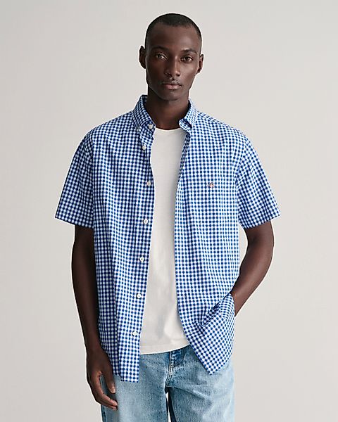 Gant Kurzarmhemd "Regular Fit Gingham Popeline Hemd strapazierfähig pflegeleicht kariert" mit einer kleinen Logostickerei auf der Brusttasche