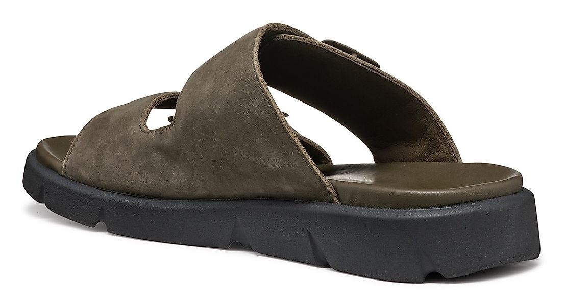Leder, schwarz|schwarz, atmungsaktive Pantolette, breite Bandage aus Leder, in bequemer Schlupfform, innen komplett aus Leder, stoßdämpfend und leicht, mit patentiertem GEOX-System