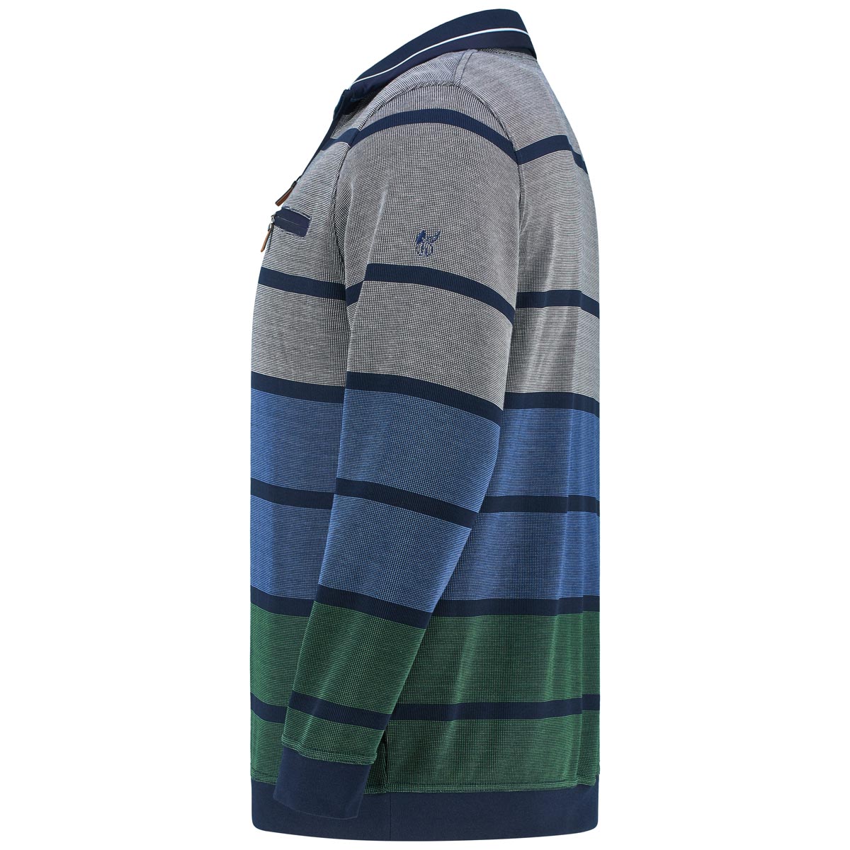 Troyerkragen Streifenmuster elastischer Abschlussbund an Ärmeln und Saum Stretch-Material softes und dehnbares Material nachhaltig: Oeko-Tex® Standard 100 Durch den Stretch-Anteil passt sich das Sweatshirt in großen Größen von Hajo optimal an und bleibt dabei formstabil. Lässig, flexibel und immer angenehm zu tragen.