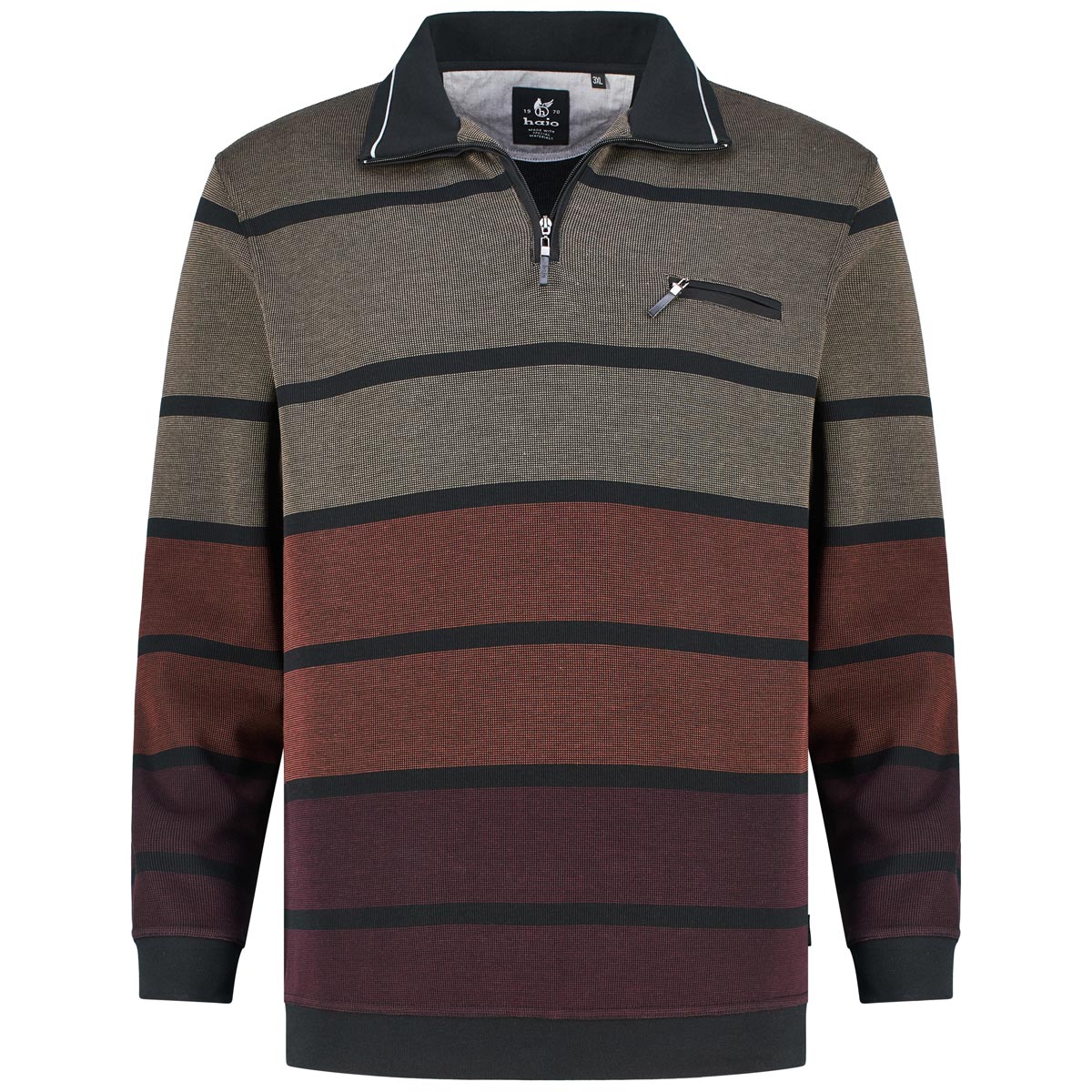 Troyerkragen Streifenmuster elastischer Abschlussbund an Ärmeln und Saum Stretch-Material softes und dehnbares Material nachhaltig: Oeko-Tex® Standard 100 Durch den Stretch-Anteil passt sich das Sweatshirt in großen Größen von Hajo optimal an und bleibt dabei formstabil. Lässig, flexibel und immer angenehm zu tragen.