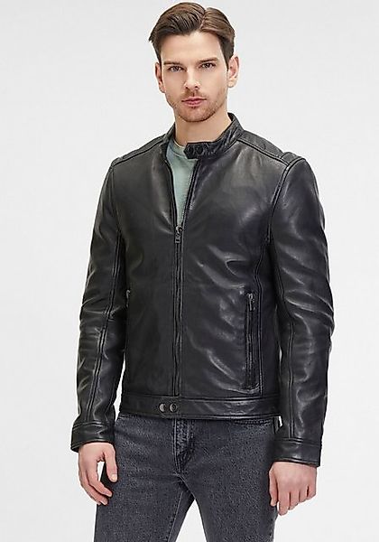 Mit der Lederjacke von Mauritius sind Männer nicht nur warm, sondern auch modebewusst gekleidet. Die Jacke mit Stehkragen ist kurz und anschmiegsam. Sowohl an den langen Ärmeln als auch am Rumpfabschluss ist ein angesetztes Bündchen. In den Reißverschlusstaschen sind Wertsachen sicher aufbewahrt und können nicht einfach herausfallen. Der Look wird mit einem Markenlabel und Ziernähten abgerundet. Dank des hochwertigen und pflegeleichten Schafsleders können Verschmutzungen auf der Lederjacke einfach weggeputzt werden. Sie ist ein toller Begleiter für den Spaziergang im Wald oder spontane Verabredungen mit Freunden., Material: Materialzusammensetzung: Obermaterial: 100% Schafsleder, Materialhinweis: enthält nicht textile Teile tierischen Ursprungs, Pflegehinweise: Lederreinigung, Optik/Stil: Optik: unifarben, Farbe: Farbbezeichnung: schwarz, Passform/Schnitt: Kragen: Stehkragen, Ärmellänge: Langarm, Ärmeldetails: eingesetzt, Ärmelabschluss: angesetztes Bündchen, Rumpfabschluss: angesetztes Bündchen, Passform: slim fit, Schnittform Länge: kurz, Details: Applikationen: Markenlabel, Reißverschlüsse, Ziernähte, Anzahl Taschen: 2 Stk., Taschen: Reißverschlusstaschen, Verschluss: Reißverschluss, Besondere Merkmale: mit Reißvershcluss, Ziernähte, Stehkragen, Maßangaben: Größenhinweis: Fällt klein aus, bitte eine Größe größer bestellen.