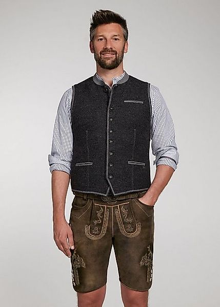 Mit dem klassischen Design und farblichen Akzenten an Kragen, Säumen und Taschen wird die „Novum“ zu deiner neuen Lieblingsweste. Die robuste Strickqualität macht sie zur perfekten Begleiterin für deine Trachtenoutfits und ist immer superbequem. Eine Knopfleiste aus dunkel schimmernden Knöpfen rundet die zeitlose Optik gekonnt ab.
