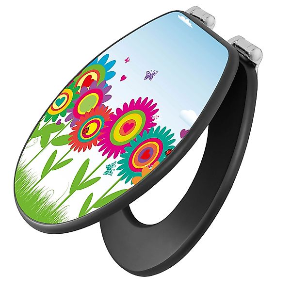 Banjado Anthrazit Toilettendeckel Mit Absenkautomatik WC-Sitz Soft Close Hygienischer Klodeckel MDF Mit Motiv Bunte Blumen