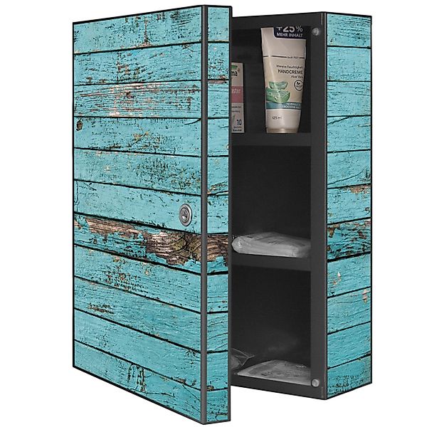Banjado XXL Medizinschrank Abschliessbar 35x46x15cm Arzneischrank Anthrazit Aus Metall Mit Motiv Blaue Holzlattenobi.de