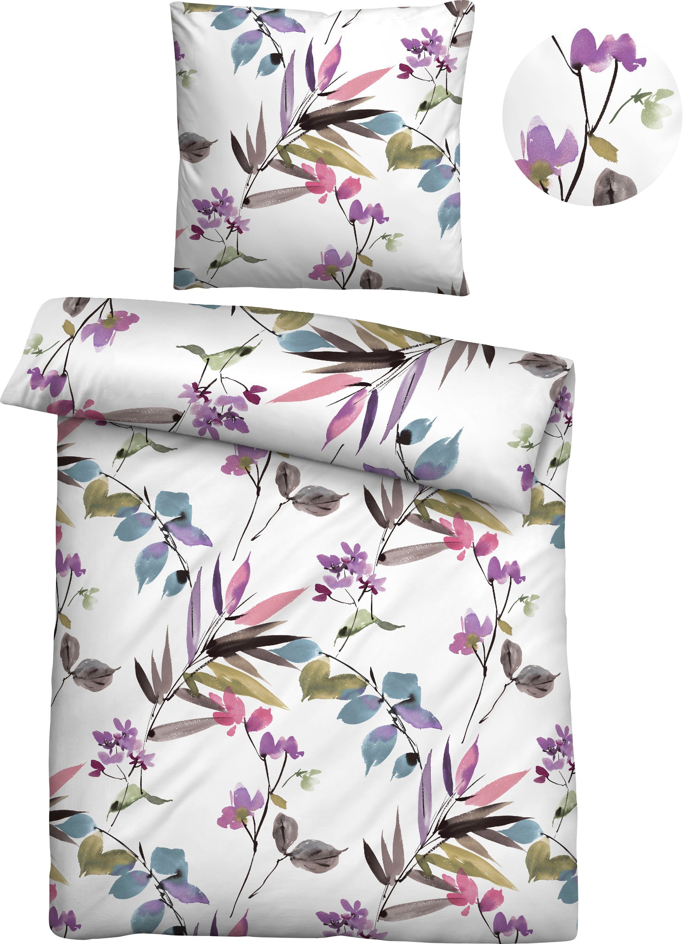 Biberna Bettwäsche "Maria in Gr. 135x200 oder 155x220 cm" 2 Stk. tlg. aus Baumwolle, florale Bettwäsche in Soft-Seersucker Qualität