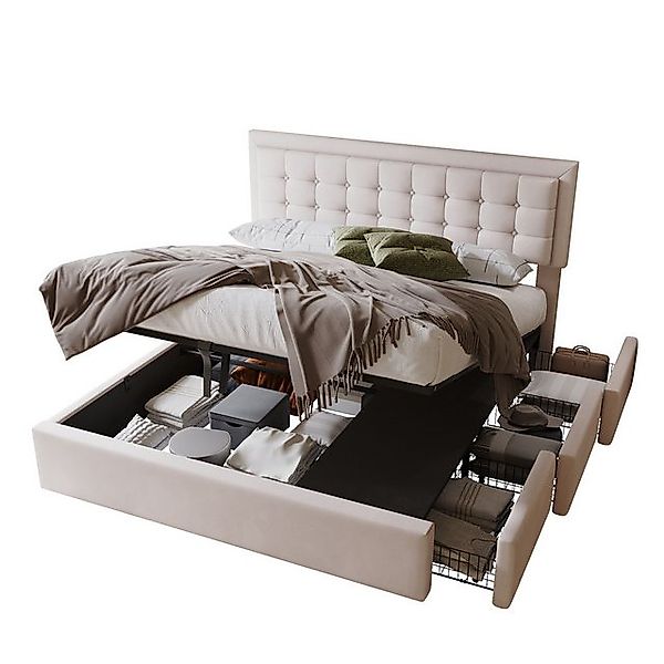 BlingBin Einzelbett Polsterbett Doppelbett (1-tlg., mit Lattenrost, Grau-Beige), Verstellbares Kopfteil,160 x 200 cmotto.de
