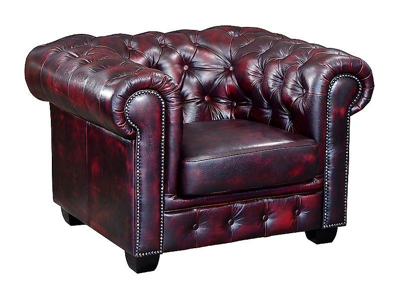 Sind Sie auf der Suche nach dem idealen Sofa und Sessel, um Ihren Wohnraum zu veredeln? Entdecken Sie die Kollektion BRENTON, in der der industrielle Stil auf absoluten Komfort trifft. Die Sofas und Sessel aus 100 % vollnarbigem Büffelleder, einem edlen und luxuriösen Material, im zeitlosen Chesterfield-Design, verziert mit genagelten Armlehnen und Vintage-Look, verleihen Ihrem Raum einen Hauch von Authentizität. Mit diesem hochwertigen Modell profitieren Sie sowohl von einer außergewöhnlichen Haltbarkeit als auch von einer bemerkenswerten Ästhetik!Produktdetails Farbe (Schattierungen): Bordeaux Material (Präzision): Rundumbezug 100% Leder, Premiumleder Lederart: Büffelleder Material (Füße): Holz Struktur: Holz, Furnierplatte Finish: Gepolstert Modelltyp: Chesterfield Design Anzahl Personen: 1 Person Polsterung Sitzfläche: atmungsaktiver Polyurethanschaum Raumgewicht der Sitzfläche: 40 kg/m³ Unterfederung der Sitzfläche: Elastische Polstergurte Mit Armlehnen Maximale Traglast: 120 kg Montiert geliefert (außer Beine und/oder Griffe)Ca.-Maße Breite: 105 cm Höhe: 73 cm Tiefe: 96 cm Sitzhöhe: 46 cm Sitztiefe: 57 cmVersanddetailsLieferzeit und Versandkosten werden Ihnen auch in Ihrem Warenkorb angezeigt.PaketPaket Nr.1: Breite 112 cm, Tiefe 103 cm, Höhe 80 cm, Gewicht 38 kg,