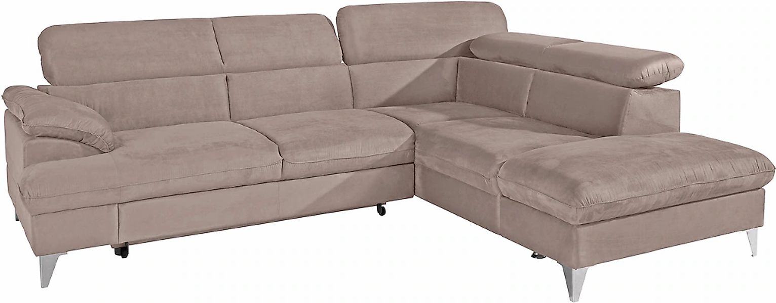 Stark in Design und Funktionalität - die trendige Ecksofa »Caluso« aus dem Hause Cotta. Trendige Farben sorgen dafür, dass dieses Ecksofa ein Blickfang in jedem Wohnzimmer ist. Viel Flexibilität bei der Positionierung der Couch gibt die freie Stellbarkeit im Raum. Auch durch die wahlweise links oder rechts bestellbare Ottomane kann sie den räumlichen Gegebenheiten angepasst werden. Für hohen Sitzkomfort sorgt die Wellenunterfederung der Sitzflächen. Die perfekte Relax-Position wird mit dem verstellbaren Kopfteil schnell gefunden. Für Übernachtungsgäste kann eine Bettfunktion und ein Bettkasten gewählt werden. Diese praktische Schlaffunktion lässt das Sofa schnell in ein bequemes Bett umwandeln. FSC®-zertifizierter Holzwerkstoff bildet einen soliden Rahmen. Schafft eine wohnliche Atmosphäre - die trendige Ecksofa »Caluso« von Cotta., Ausstattung & Funktionen: Stellvariante: Ottomane rechts, Art Polsterung: Wellenunterfederung, Polsteraufbau: Polyätherschaum-Polsterung, Ausstattung: Bettkasten, Raumgewicht: 25 kg/m³, Anzahl Sitzflächen: 4 Stk., Maßangaben: Breite: 256 cm, Tiefe: 208 cm, Höhe: 74 cm, Sitzhöhe: 44 cm, Breite Sitzfläche: 184 cm, Tiefe Sitzfläche: 64 cm, Vordere Breite Ottomane: 106 cm, Tiefe Ottomane: 208 cm, Breite Armlehnen: 33 cm, Tiefe Armlehnen: 85 cm, Höhe Armlehnen: 64 cm, Tiefe Armlehne links: 85 cm, Breite Liegefläche: 126 cm, Länge Liegefläche: 180 cm, Breite Bettkasten: 89 cm, Tiefe Bettkasten: 38 cm, Höhe Bettkasten: 14 cm, Höhe Füße: 12 cm, Bodenfreiheit: 12 cm, Hinweis Maßangaben: Alle Angaben sind ca.-Maße., Material: Bezug: Microfaser PRIMABELLE®, Pillingbildung Bezug: 4 (gering), Material Untergestell: Holzwerkstoff, Information Materialzusammensetzung: Kunstleder SOFTLUX®, NaturLEDER® (echtes Rindsleder), Microfaser PRIMABELLE® (100% Polyester), Farbe: Farbbezeichnung: mud, Allgemein: Ausführung: mit Bettfunktion, mit Bettkasten, mit Kopfteilverstellung, Lieferung & Montage: Aufbauhinweise: einfache Selbstmontage mit Aufbauanleitung, Lieferzustand: zerlegt, Hinweis Lieferumfang: ohne Zierkissen, Wissenswertes: Wissenswertes: Achtung! Naturleder weist grundsätzlich mehr Nähte auf als andere Bezüge.