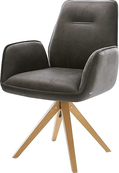 Die Sitzschale Zoa schmeichelt deinem Zuhause durch besonders schöne Details wie einer klassischen Kedernaht und einer feinen Absteppung mit Doppelziernaht an der Rückenlehne. Die weiche Polsterung und die ebenfalls gepolsterten, extravagant freistehenden Armlehnen sorgen für angenehmen Sitzkomfort.Mikrofaser ist ein idealer Bezugsstoff für moderne Stuhldesigns. Das Material sieht nicht nur zeitlos schön aus, es ist zudem angenehm weich und gleichzeitig extrem robust und leicht zu reinigen.Esszimmerstuhl Zoa Mikrofaser Anthrazit Vintage - die perfekte SitzgelegenheitDas edle Kreuzgestell überzeugt durch vier kantige Füße, die jedem Flex Stuhl einen geradlinig modernen Look verleihen. Bis zu 180 Grad drehbar und mit praktischer Rückholfunktion ausgestattet, sorgt das Gestell für ausgezeichneten Sitzkomfort über viele Stunden.Das Gestell wurde aus hochwertiger und besonders robuster Eiche gefertigt. Die natürliche Farbgebung lässt sich ausgezeichnet mit verschiedenen Farben kombinieren und fügt sich hervorragend in deine Einrichtung.Maße ca.: B62 x T65 x H91 cmSitzbreite ca.: 42 cmSitztiefe ca.: 45 cmSitzhöhe ca.: 51 cmRückenhöhe ca.: 44 cmArmlehnenhöhe ca.: 67 cmMaterialen: Sitzschale: Mikrofaser (100% Polyester), Stuhlgestell: EichenholzFarbe: Sitzschale: Anthrazit Vintage, Stuhlgestell: NaturPolsterung: Taschenfederkern mit hochwertiger Schaumabdeckung Raumgewicht 40kg/m3Oberfläche: SoftMontagehinweis: teilmontiert, die Einzelelemente müssen miteinander verbunden werdenGewicht in kg: 12Auf Grund hochwertiger Verarbeitung belastbar bis 150 KgCleaner Rücken sorgt für eine besonders elegante Optik, da auf sichtbare Reißverschlüsse komplett verzichtet wurde oder diese sehr dezent seitlich platziert sindBeim Taschenfederkern werden einzelne Federkerne in Taschen vernäht. Sie sind im Gegensatz zu anderen Federungen nicht miteinander verbunden und geben deshalb nur bei den Federn nach, die tatsächlich auch belastet werden. So bietet dieser Sitzaufbau eine punktelastische Unterstützung beim Sitzen, während die Wirbelsäule entlastet wird. Der Taschenfederkern ist mit einem formstabilen Schaum mit 40er Raumgewicht und einer exzellenten Stauchhärte extrem hochwertig und langlebig. Mit unseren Design-Möbeln mit Taschenfederkern kannst du gesunden Sitzkomfort ganz entspannt genießen.