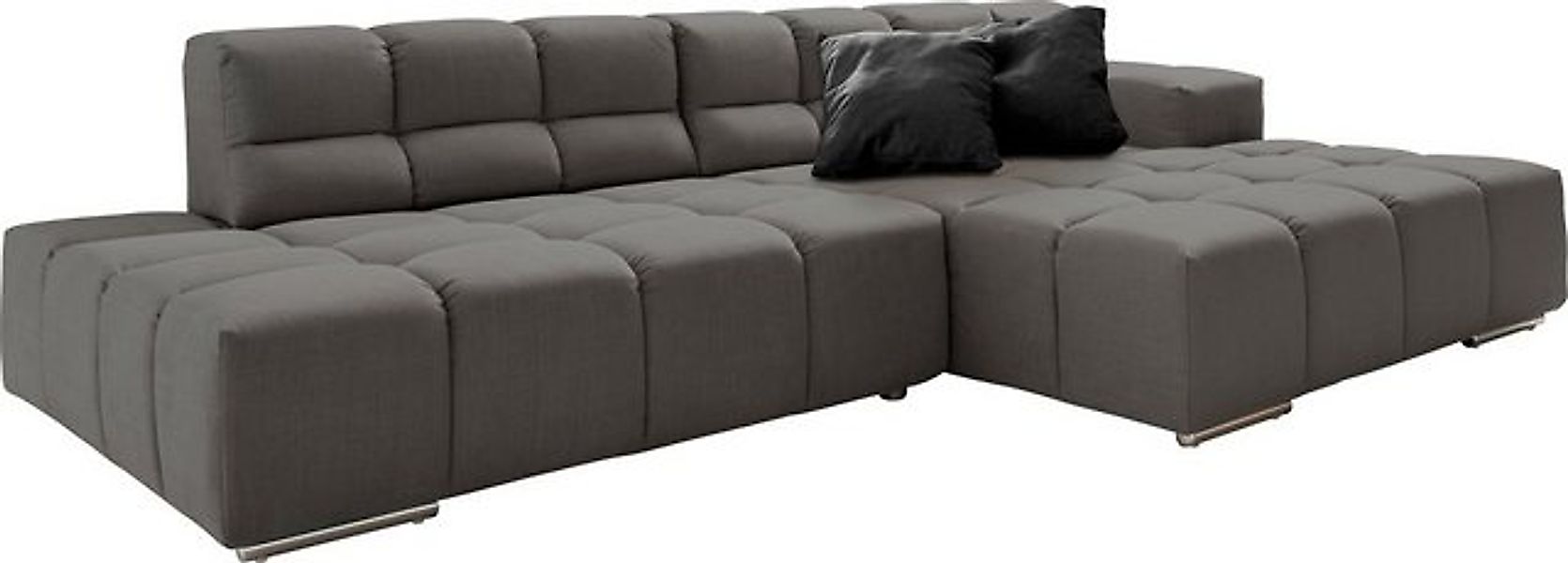 Produktdetails: Markeninformationen: Designer Sofas für das eigene Zuhause. Entscheiden Sie sich für ein Designer-Sofa von designwerk. So bekommen Sie Optik und Komfort vom Feinsten. Viele Kombinationen aber auch eine grosse Auswahl an Stoffen und Ledern bieten Spielraum für eigene Individualität. Für jeden Lebensstil und Geschmack ist das richtige dabei. Erstklassiges Wohnen ist sicher. Leben Sie modern und zeitlos elegant mit designwerk., Ausstattung & Funktionen: Stellvariante: Recamiere rechts, Ausführung Rückenlehne: gepolstert, Ausführung Sitzfläche: gepolstert, Ausführung Armlehnen: gepolstert, Art Polsterung: Polstervlies, Schaumstoff, Wellenunterfederung, Polsteraufbau: Polstervlies, Schaumstoff, Wellenunterfederung, Anzahl Füße: 9 Stk., Raumgewicht: 35 kg/m³, Anzahl Sitzflächen: 3 Stk., Maßangaben: Breite: 286 cm, Tiefe: 169 cm, Sitzhöhe: 38 cm, Breite Sitzfläche: 247 cm, Tiefe Sitzfläche: 78 cm, Tiefe Sitzfläche minimal: 61 cm, Tiefe Sitzfläche maximal: 78 cm, Tiefe Recamiere: 169 cm, Breite Sitzfläche Recamiere: 144 cm, Breite Armlehnen: 39 cm, Höhe Armlehnen: 54 cm, Höhe Füße: 4 cm, Bodenfreiheit: 4 cm, Tiefe Hauptelement: 113 cm, Höhe maximal: 70 cm, Höhe minimal: 70 cm, Gewicht: 102 kg, Belastbarkeit pro Sitzplatz: 120 kg, Hinweis Maßangaben: Alle Angaben sind ca.-Maße., Material: Bezug: Flachgewebe, Bezug Korpus: Flachgewebe, Bezug Sitzfläche: Flachgewebe, Bezug Rückenlehne: Flachgewebe, Bezug Armlehnen: Flachgewebe, Abriebfestigkeit Bezug: 3 (ziemlich gut), Pillingbildung Bezug: 4 (gering), Material Untergestell: Holzwerkstoff, Material Füße: Metall, Materialhinweis: Rückseite Originalbezugsqualität, Information Materialzusammensetzung: 100 % Polyester, Scheuerbeständigkeit Bezug: 100.000 Scheuertouren, Farbe: Farbbezeichnung: Dark Grey, Farbhinweise: Bitte beachten Sie, dass bei Online-Bildern der Artikel die Farben auf dem heimischen Monitor von den Originalfarbtönen abweichen können., Farbe Rückenlehne: Dark Grey, Farbe Armlehnen: Dark Grey, Farbe Füße: chrom, Lieferung & Montage: Anzahl Packstücke: 2 Stk., Aufbauhinweise: inklusive Aufbauanleitung - eine zweite Person zum Aufbau wird empfohlen, Lieferumfang: Zierkissen, Lieferzustand: teilmontiert, nur einhaken und Füße montieren, Hinweis Lieferumfang: 2 Zierkissen B/H in ca. 55/55 cm, Wissenswertes: Art Herstellung: handgefertigt, Serie: Serie: designwerk Temple