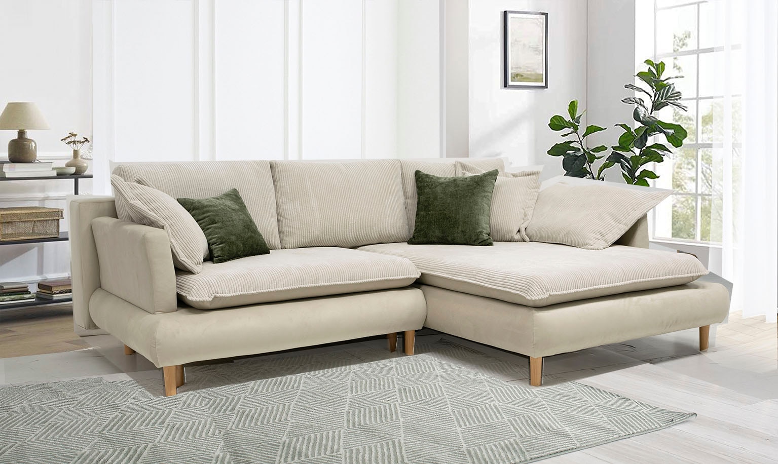 DOMO collection Ecksofa "Papenburg, zeitlose Rückensteppung, elegante Formensprache, L-Form" in großer Farbvielfalt, wahlweise mit Bettfunktion