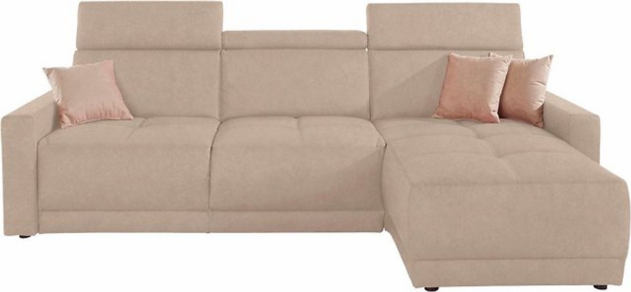 DOMO collection Ecksofa "Ava mit moderner Sitzheftung & toller Doppelnaht, komfortabel, L-Form" mit Recamiere, inkl. Federkern, wahlweise mit Kopfteilverstellungen