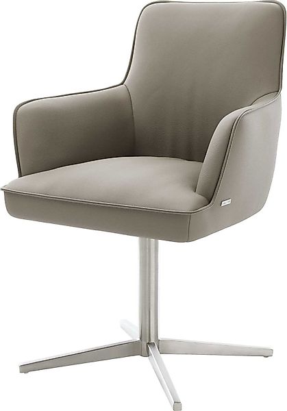 Drehstuhl Heira-Flex mit Armlehnen Echt-Leder Schlamm Fußkreuz Edelstahl 360° drehbar Taschenfederkerndelife.de