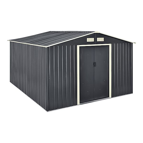 Geräteschuppen Mit dem Gartenhaus schaffen Sie Ordnung und verstauen Ihre Gegenstände trocken, sauber und ordentlich. Egal ob bspw. Gartenmöbel, Gartengeräte, Rasenmäher, Fahrräder, Mülltonnen oder Autoreifen. Der stabile und wetterfeste Gartenschuppen mit zweigeteilter Schiebetür bietet idealen Stauraum in Ihrem Außenbereich. Produktdetails: - Robustes und wetterfestes Gerätehaus für den Außenbereich - Zum Aufbewahren von Gartenutensilien, Werkzeugen oder Outdoor Möbeln - Schneller und einfacher Aufbau - Metallrahmen sorgt für einen festen Stand - Zweigeteilte und raumsparende Schiebetür, separat zu öffnen - Abschließbar mit Vorhängeschloss (Schloss nicht im Lieferumfang) - Dachecken verfügen über einen Kantenschutz aus Kunststoff - Gute Luftzirkulation durch 4 Belüftungsgitter (2 vorne, 2 hinten) - Stabiles Satteldach lässt Regenwasser ablaufen Material: - Geräteschuppen: Stahlblech, feuerverzinkt - Rahmen: Metall - Dachkantenschutz: Kunststoff Maße: - Gesamt (LxBxH): 277 x 319 x 192 cm - Abstand vom Boden zur unteren Dachkante: 152 cm - Innenmaße (LxBxH): 267 x 309 x 192 cm - Sockelmaß (LxB): 267 x 309 cm - Eingang (BxH): 96 x 150 cm - Lagerplatz: ca. 15 m³ Farbe: Dunkelgrau Lieferumfang: - 1 x Geräteschuppen - 1 x Aufbauanleitung Markenware aus dem Hause: [en.casa]