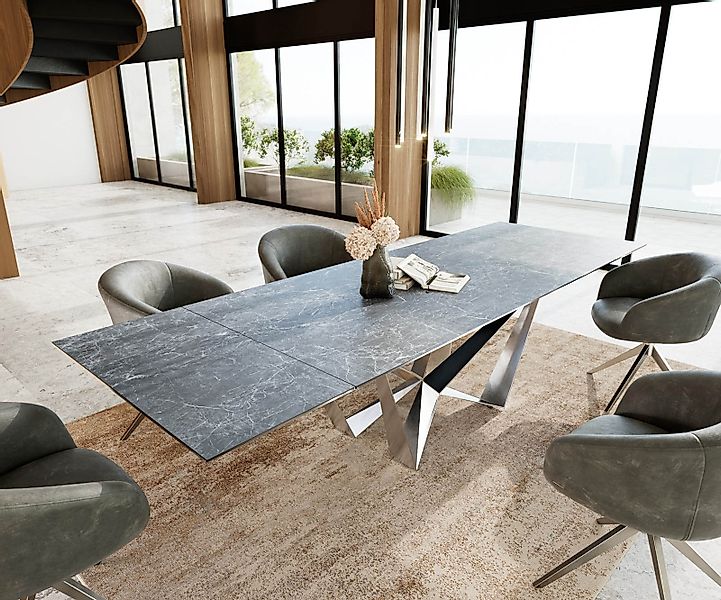 Esstisch Edge 200-300x100 Keramik Laminam®Nero Greco Anthrazit Spider Flachstahl Edelstahl ausziehbardelife.de
