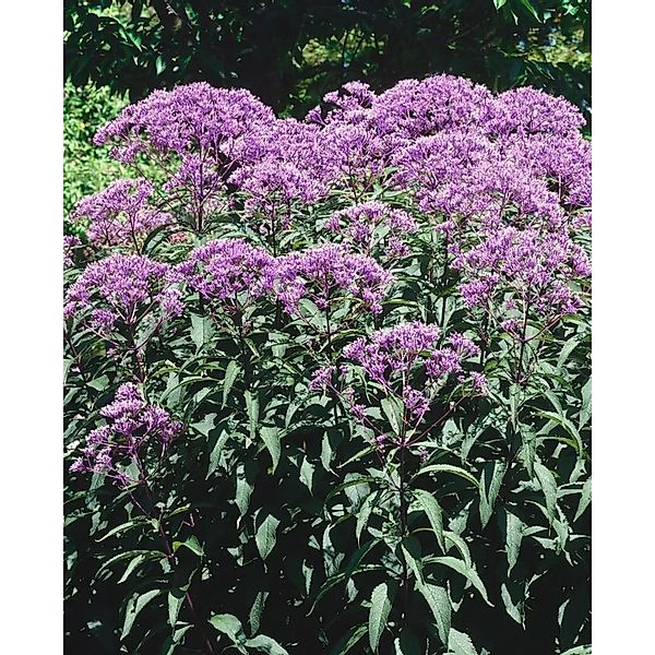 Eupatorium fistulosum Baby Joe, bekannt als Purpur-Wasserdost, ist eine kompakte, standfeste Gartenstaude, die mit dichten, purpur-rosa Blütenständen und elegant aufrechtem Wuchs Akzente setzt. Die horstig wachsende Blütenstaude erreicht je nach Standort etwa 80 bis 100 cm Höhe und trägt breit lanzettliches, sattgrünes Laub, das die reich verzweigten Rispen im Spätsommer perfekt zur Geltung bringt. Von August bis Oktober öffnet sich die Fülle zarter, leicht duftender Blüten, die Beeten, Rabatten und naturnahen Pflanzungen eine späte Farbspitze verleihen. Als Prachtstaude macht Baby Joe sowohl in der Gruppenpflanzung als auch als Solitär eine hervorragende Figur und eignet sich zudem für den Teichrand, den Prärie- oder Cottage-Garten sowie als kräftige Strukturpflanze im Hintergrund. Auf Terrasse und Balkon überzeugt sie als robuste Kübelpflanze, sofern der Wurzelbereich gleichmäßig frisch gehalten wird. Bevorzugt wird ein sonniger bis halbschattiger Standort mit humosem, nährstoffreichem, durchlässigem und dauerhaft frischem Boden; kurze Trockenphasen werden toleriert, regelmäßiges Gießen und Mulchen fördern jedoch Vitalität und Blühfreude. Eine Düngergabe im Frühjahr sowie ein bodennaher Rückschnitt erst im späten Winter oder zeitigen Frühjahr sorgen für kompakte, standfeste Triebe. In Kombination mit herbstblühenden Stauden wie Astern, Helenium, Rudbeckia oder Ziergräsern entsteht ein harmonisches, variantenreiches Bild. Baby Joe ist winterhart, langlebig und lässt sich zur Verjüngung alle paar Jahre teilen, wodurch die Beetstaude zuverlässig vital bleibt und ihre eindrucksvolle Spätblüte Jahr für Jahr sicher zeigt.