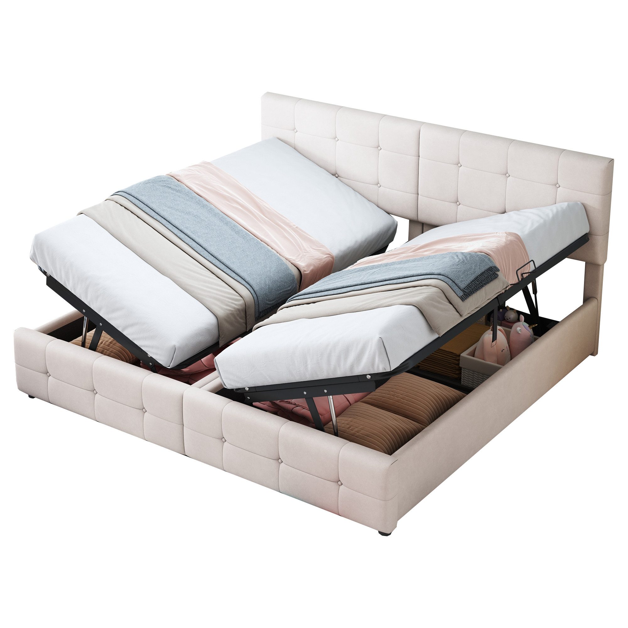 Flieks Holzbett, LED Doppelbett 180×200cm mit Aufladen, Stauraumfächer und Schubladen