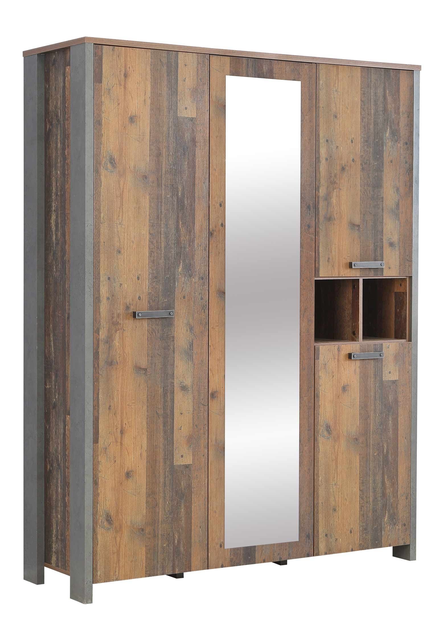 Kleiderschrank ca 160 cm breit mit Spiegel Old Wood Vintage Beton CLIF