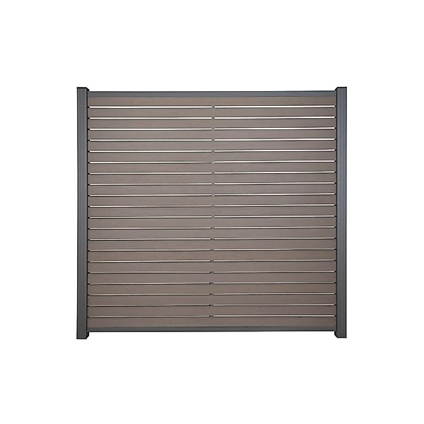 GartenLand Rhombus WPC Zaun Set Kopenhagen ca. 180 x 180 cm Sichtschutz Steckzaun Schokobraun mit Holzstruktur Aluminium Anthrazit Der WPC Steckzaun Kopenhagen kombiniert modernes Design mit hoher Funktionalität und bietet einen langlebigen, stilvollen Sichtschutz. Dank der schnellen Lieferung können Sie Ihren neuen Zaun zügig aufstellen und Ihre Privatsphäre genießen. Zeitgemäßes Design für jeden Garten: Mit seinem markanten Rhombus-Profil schafft der WPC Steckzaun Kopenhagen eine edle und zugleich luftige Optik. Die Farbe Schokobraun mit geprägter Holzstruktur verleiht dem Zaun eine warme, natürliche Note und fügt sich harmonisch in jede Gartenlandschaft ein. Dieser Zaun ist beidseitig ansprechend gestaltet und verzichtet auf störende Rückleisten, sodass er von beiden Seiten ein ästhetisches Bild abgibt. Je nach Geschmack und Gestaltungsvorlieben kann der Zaun mit anthrazitfarbenen oder silbernen Standpfosten kombiniert werden, um den gewünschten Stil perfekt zu unterstreichen. Schnelle Montage, pflegeleicht und wetterbeständig: Die clevere Stecktechnik ermöglicht eine schnelle und unkomplizierte Montage. Die Rhombus-Lamellen werden mithilfe der mitgelieferten Abstandshalter aufeinandergesteckt, wodurch sich der Zaun in kürzester Zeit montieren lässt, nachdem die Pfosten gesetzt sind. Dieser Zaun ist äußerst langlebig, farbstabil und wetterfest. Anders als Holz muss er nicht nachgestrichen oder behandelt werden. Verschmutzungen, beispielsweise durch Witterung oder Grünbelag, lassen sich einfach mit einem Schwamm und Wasser entfernen. Das Material aus einem hochwertigen Holz-Kunststoff-Verbund (WPC) ist zudem frostsicher. Es wird empfohlen, stehendes Wasser zu vermeiden, um langfristige Schäden zu verhindern. Flexible Höhenund Breitenanpassung: Dank des modularen Systems können Sie die Höhe des Zauns individuell anpassen, indem Sie die Anzahl der Lamellen nach Bedarf variieren. Für Vorgartenzäune gibt es 97 cm hohe Pfosten, während größere Höhen durch Kürzen oder tieferes Einbetonieren der 180 cm bzw. 239 cm hohen Pfosten erreicht werden können. Der Zaun lässt sich zudem mit anderen Farbvarianten der Kopenhagen-Serie kombinieren, um eine noch individuellere Gestaltung zu ermöglichen. Technische Details des WPC Kopenhagen Steckzauns: Material: WPC Rhombus Steckzaunlamellen Farbe: Schokobraun Oberfläche: Geprägte Holzstruktur Höhe des Zaunfeldes: ca. 180 cm Breite des Zaunfeldes: ca. 180 cm Länge der WPC Lamelle: 1793 mm Höhe der WPC Lamelle: 75 mm Stärke der WPC Lamelle: 20 mm Die endgültige Aufbauhöhe beträgt ca. 180 cm, da sie sich aus der Summe der Lamellenhöhe plus Bodenabstandshalter ergibt. Zur erhöhten Windstabilität empfehlen wir die Verwendung von zusätzlichen Sturmankern. Die genannten Farbbezeichnungen entsprechen nicht den RAL-Farbtönen der RAL-Farbpalette. Bitte beachten Sie die Vorgaben aus der jeweiligen Montageanleitung. Zur Gewährleistung verwenden Sie bitte nur das Zubehörmaterial von GartenLand. Dieses finden Sie in der Produktbeschreibung hinterlegt. Zubehör: Pfosten Anthrazit 239 cm 3 Nut: 2191114884469 Pfosten Anthrazit 239 cm 2 Nut: 2191114884728 Pfosten Anthrazit 180 cm 3 Nut: 2191114884827 Wandpfosten Anthrazit 200 cm: 2191114884766 Pfosten Anthrazit 97 cm 3 Nut: 2191114884834 Pfostenträger 2er: 2191114884865 Pfostenträger 3er: 2191114884803 Sturmanker: 2191114884483 Lieferumfang: 21x Steckzaunlamelle Kopenhagen 1x Aluminium Oberprofil 1x Aluminium Unterprofil 2x Zentralprofil 20x mittige Abstandshalter 40x äußere Abstandshalter Wichtiger Hinweis: Standpfosten sind nicht im Set enthalten, können jedoch separat im Shop erworben werden.