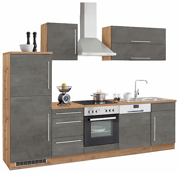 Produktdetails: Markeninformationen: Kochstation schafft Küchen, die perfekt zum Kochen und gleichzeitig erschwinglich sind. Durch ihr Design, ihre Wandelbarkeit und ihre durchdachten Details werden sie zum Zentrum des Lebens im eigenen Zuhause., Serie: Samos, Ausstattung & Funktionen: Art Küche: Küchenzeile, Ausführung: ohne E-Geräte, Ausstattung: inkl. Edelstahl-Auflagespüle, mit Abtropffläche, Ausstattung Geräte: ohne E-Geräte, Farbe & Material: Farbe Korpus: wotaneichefarben, Material Korpus: Spanplatte, Farbe Front: betongrau, Material Front: MDF, Farbe Schubladen: beton Oxid, Farbe Türen: beton Oxid, Farbe Griffe: chromfarben, Material Griffe: Metall, Farbe Arbeitsplatte: wotaneichefarben, Farbe Innendekor: weiß, Material Beschläge: Metall, Material Schubladenauszug: Metall, Hinweis Farbe: Bitte beachten Sie, dass bei Online-Bildern der Artikel die Farben auf dem heimischen Monitor von den Originalfarbtönen abweichen können., Maßangaben: Breite: 280 cm, Tiefe: 60 cm, Höhe: 200 cm, Arbeitshöhe inkl. Arbeitsplatte: 85 cm, Höhe Frontblende: 57,2 cm, Hinweis Maßangaben: Alle Angaben sind ca.-Maße., Unterschrank: Anzahl Unterschränke: 1 Stk., Art Unterschrank: Auszugsschrank, Breite Unterschrank: 50 cm, Tiefe Unterschrank: 60 cm, Höhe Unterschrank: 82 cm, Anzahl Schubladen Unterschrank: 1 Stk., Anzahl Auszüge Unterschrank: 2 Stk., Informationen Unterschrank: Schubladeninnenmaße (B/T/H): 41/39/11 cm, Auszugsinnenmaße (B/T/H): 41/39/25 cm, Hängeschrank: Anzahl Hängeschränke: 2 Stk., Art Hängeschrank: Klapphängeschrank, Breite Hängeschrank: 110 cm, Tiefe Hängeschrank: 34 cm, Höhe Hängeschrank: 57 cm, Informationen Hängeschrank: 2 Klappen, 1 fester Boden in der Mitte, Art Hängeschrank 2: Hängeschrank, Breite Hängeschrank 2: 50 cm, Tiefe Hängeschrank 2: 34 cm, Höhe Hängeschrank 2: 57 cm, Anzahl Türen Hängeschrank 2: 1 Stk., Anzahl Einlegeböden Hängeschrank 2: 1 Stk., Spülenschrank: Anzahl Spülenschränke: 1 Stk., Anzahl Türen Spülenschrank: 1 Stk., Breite Spülenschrank: 50 cm, Tiefe Spülenschrank: 60 cm, Höhe Spülenschrank: 82 cm, Informationen Spülenschrank: Gesamtmaße Einbauspüle (B/T): 86/43,5 cm, Maße des Spülbeckens: (B/T/Beckentiefe): 37/34/14 cm, Anleitung zur Montage liegt dem Geschirrspüler bei, Geschirrspüler nicht außen einplanen, Tür, Sockel - geeignet für teilintegrierbaren Einbaugeschirrspüler, Umbauschrank: Anzahl Umbauschränke: 2 Stk., Art Umbauschrank: Herdumbauschrank, Breite Umbauschrank: 60 cm, Tiefe Umbauschrank: 60 cm, Höhe Umbauschrank: 82 cm, Nischenmaße (B/T/H) Umbauschrank: 56/55/59, Art Umbauschrank 2: Kühlschrankumbau, Anzahl Türen Umbauschrank 2: 2 Stk., Anzahl Einlegeböden Umbauschrank 2: 1 Stk., Breite Umbauschrank 2: 60 cm, Tiefe Umbauschrank 2: 60 cm, Höhe Umbauschrank 2: 165 cm, Nischenmaße (B/T/H) Umbauschrank 2: 56/55/88, Arbeitsplatte: Breite Arbeitsplatte: 220 cm, Tiefe Arbeitsplatte: 60 cm, Stärke Arbeitsplatte: 2,8 cm, Informationen Arbeitsplatte: ohne Ausschnitte - dadurch sind die Schränke zum Teil variabel stellbar, Lieferung & Montage: Lieferzustand: zerlegt, Hinweise: Pflegehinweise: trocken abwischbar, Wissenswertes: Herstellungsland: Made in Germany, Wissenswertes: Enthaltene Einlegeböden sind bis 3 Kilogramm belastbar, Sockelhöhe 11 cm, nicht verstellbar