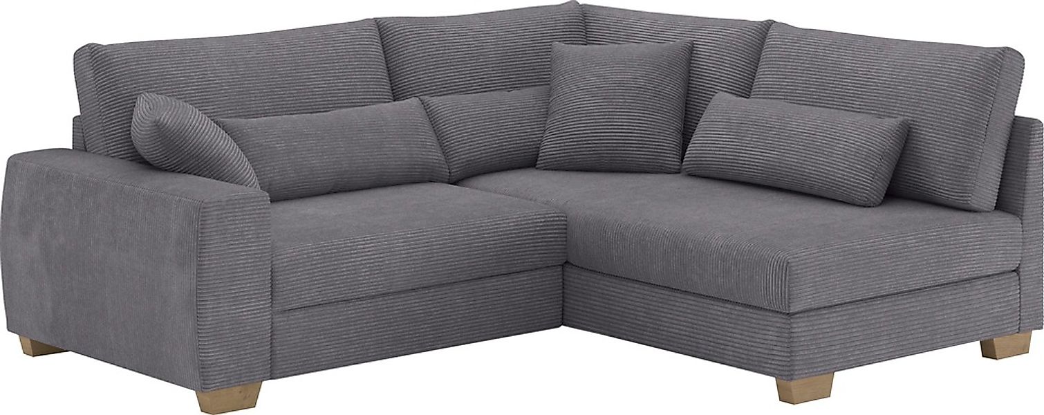 Produktdetails: Markeninformationen: Seit 2001 begeistert uns Home affaire mit Landhausmöbeln zum Verlieben. Ob modern, romantisch oder natürlich traditionell – der Fantasie für wunderschönes Einrichten sind kaum Grenzen gesetzt., Ausstattung & Funktionen: Stellvariante: Ottomane links, Art Polsterung: Federkern, Polyätherschaum-Polsterung, Wellenunterfederung, Polsteraufbau: Federkern, Polyätherschaum-Polsterung, Wellenunterfederung, Anzahl Rückenkissen: 4 Stk., Art Rückenkissen: lose, Anzahl Zierkissen: 2, Ausstattung: Rückenkissen, Zierkissen, Anzahl Füße: 5 Stk., Art Füße: Trapezfuß, Raumgewicht: 30 kg/m³, Anzahl Sitzflächen: 5 Stk., Anzahl Armlehnen: 1, Maßangaben: Breite: 227 cm, Tiefe: 190 cm, Höhe: 68 cm, Sitzhöhe: 44 cm, Breite Sitzfläche: 198 cm, Tiefe Sitzfläche: 98 cm, Tiefe Ottomane: 190 cm, Breite Sitzfläche Ottomane: 98 cm, Tiefe Sitzfläche Ottomane: 179 cm, Breite Armlehnen: 22 cm, Tiefe Armlehnen: 104 cm, Höhe Armlehnen: 58 cm, Höhe Armlehne links: 58 cm, Breite Armlehne rechts: 22 cm, Tiefe Armlehne rechts: 104 cm, Höhe Armlehne rechts: 58 cm, Höhe Füße: 8 cm, Bodenfreiheit: 8 cm, Höhe Rückenlehne: 27 cm, Höhe maximal: 88 cm, Höhe minimal: 68 cm, Höhe Rückenkissen: 45 cm, Höhe Zierkissen: 45 cm, Breite Zierkissen: 45 cm, Breite Nierenkissen: 73 cm, Höhe Nierenkissen: 27 cm, Gewicht: 103 kg, Belastbarkeit pro Sitzplatz: 100 kg, Höhe Liegefläche: 44 cm, Hinweis Maßangaben: Alle Angaben sind ca.-Maße., Material: Bezug: Cord, Bezug Korpus: Stripes 8624 blue grey, Bezug Sitzfläche: Stripes 8624 blue grey, Bezug Rückenlehne: Stripes 8624 blue grey, Bezug Armlehnen: Stripes 8624 blue grey, Pillingbildung Bezug: 4, Material Untergestell: Holzwerkstoff, Holz teilmassiv, Material Füße: Holz, Holzart: Buche, Information Materialzusammensetzung: Novaclean Avanti (100% Polyester), Scheuerbeständigkeit Bezug: 100.000 Scheuertouren, Bezug Rückenkissen: Stripes 8624 blue grey, Farbe: Farbbezeichnung: blaugrau, Farbhinweise: Bitte beachten Sie, dass bei Online-Bildern der Artikel die Farben auf dem heimischen Monitor von den Originalfarbtönen abweichen können., Farbe Füße: eichefarbig, Allgemein: Ausführung: ohne Bettfunktion, Lieferung & Montage: Anzahl Packstücke: 2 Stk., Aufbauhinweise: Selbstmontage mit Aufbauanleitung, Lieferumfang: Ecksofa, 4 Rückenkissen, 3 Nierenkissen, 2 Zierkissen, Lieferzustand: zerlegt, Hinweise: Hinweis Zubehör: gegen Aufpreis auch ein Hocker erhältlich, Pflegehinweise: Bitte beachten Sie die Pflegehinweise gemäß dem beiliegenden Produkt- und Materialpass., Pflegehinweise Bezug: Bitte beachten Sie die Pflegehinweise gemäß dem beiliegenden Produkt- und Materialpass., Wissenswertes: Wissenswertes: Pflegehinweise für Microfaser-Stoffe Zur allgemeinen Pflege reicht es aus, wenn Sie die Oberfläche mit einer weichen Kleiderbürste ab und zu leicht abbürsten oder mit der Polsterdüse absaugen. Flecken sollten Sie grundsätzlich sofort entfernen. Waschen Sie Flecken mit kreisenden Bewegungen und wenig Druck mit einem weißen Baumwolltuch und lauwarmem Wasser großflächig ab. ACHTUNG! Durch zu viel Druck beim Auswaschen können die Farben verblassen! Prüfen Sie vorsorglich an einer versteckt liegenden Stelle, wie sich die Farbgebung des Stoffes verhält. Lassen Sie die feuchten Stellen normal abtrocknen. Verwenden Sie keinen Haartrockner. Ganz hartnäckige Flecken können Sie auch mit einem Polster-/Teppichreiniger auf wasserlöslicher - oder Schaumbasis behandeln. Testen Sie immer zuerst an einer verdeckten Stelle, ob das Reinigungsmittel den Stoff angreift., Pflegehinweise für Strukturstoffe Dieser Bezug zeichnet sich durch sein dezentes Farbenspiel sowie des angenehmen Griffes aus, der , Art Herstellung: handgefertigt, Herstellungsland: Made in Europe