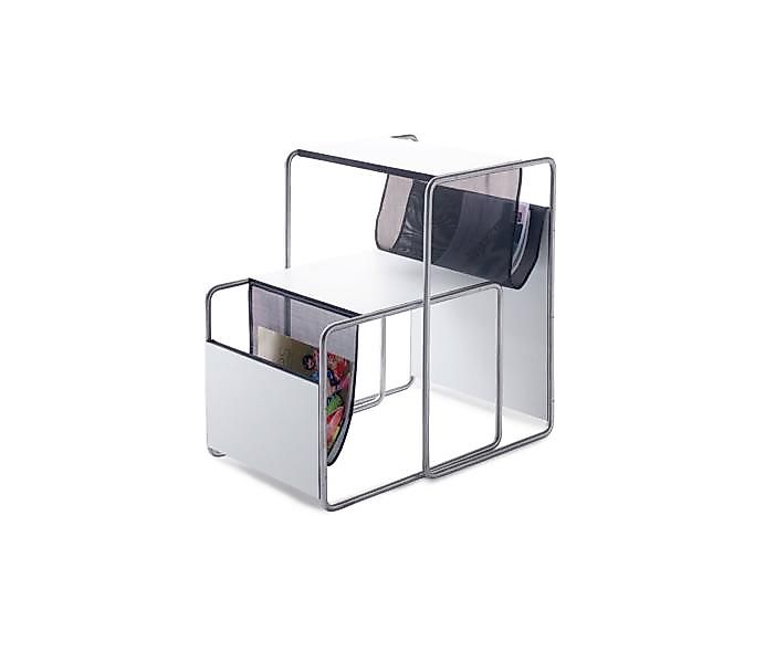 Honky Tonk- das bezeichnet die Kombination aus Beistelltisch und Zeitungshalter. Dieses gewitzte Möbelstück aus dem Hause Signet ist nicht nur ein Hingucker in Wartezimmern und Praxisräumen- er ist zugleich auch funktional. Ein bewegliches Fach für Zeitungen und Zeitschriften, sowie eine Ablagefläche auf einem Edelstahlgestell machen Honky Tonk zu einem funktionalen Möbelstück. Durch Drehen und Wenden kann man den Beistelltisch in die für sich passende Position bringen, vor allem zwei Tische sind hierbei praktisch, da sie auch ineinander verschoben werden können und dadurch scheinbar ganz neue Möbelstücke entstehen. Das bewegliche Zeitungsfach ist hierbei besonders entscheidend- es gleicht sich jeder Position von selbst an.Dank einer großen Auswahl an Materialien lässt sich Honky Tonk bestens an seinen zukünftigen Bestimmungsort angleichen und wird so zum perfekten Alltagsutensil. Die Ti...