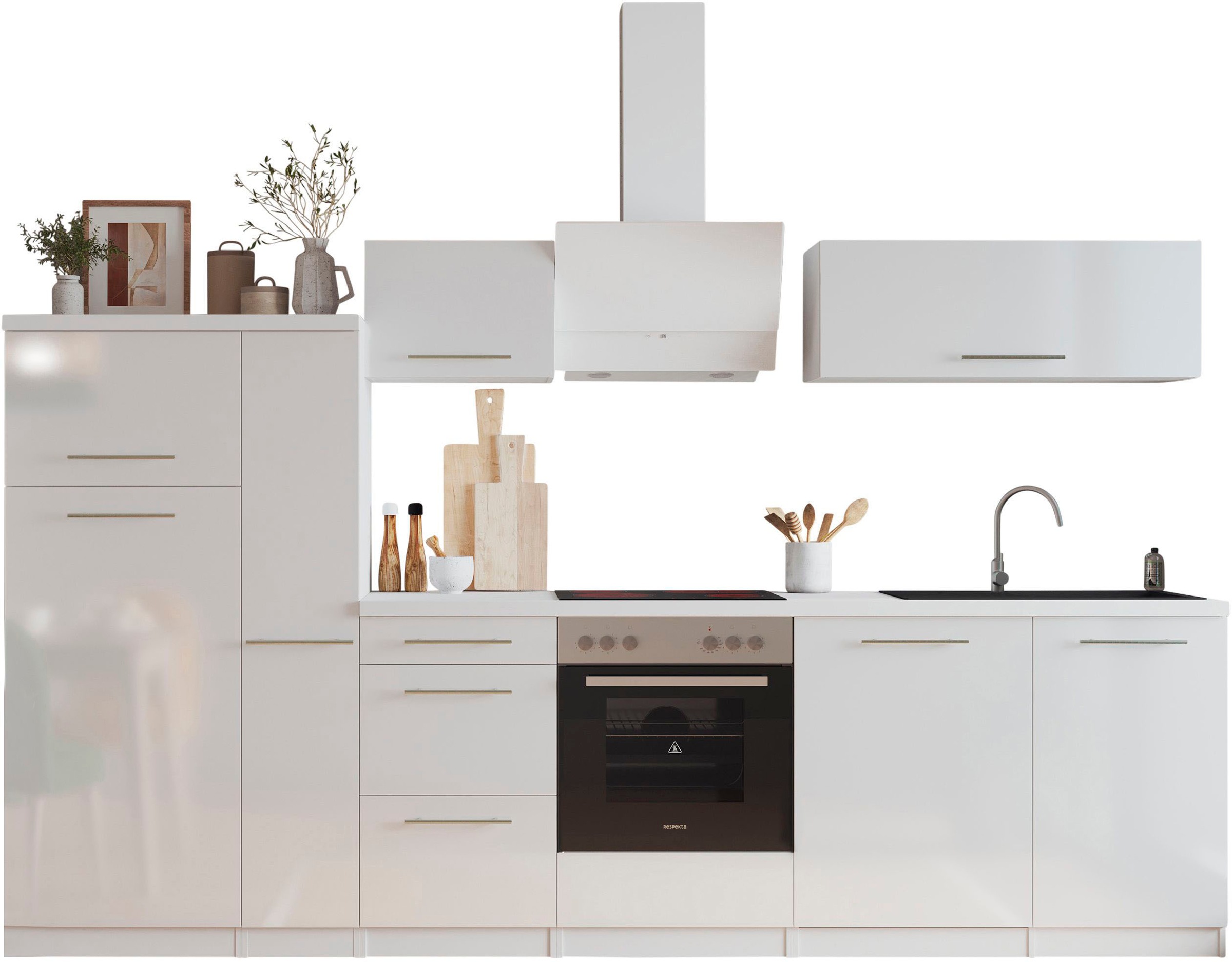 sale Respekta RESPEKTA Küche »Amanda« Breite 310 cm, mit Soft-Close, inklusive Elektrogeräte: Geschirrspüler, Kühl-/Gefrierkombination und Herd-Set, Dunstabzugshaube 3719.99 € 4899 €