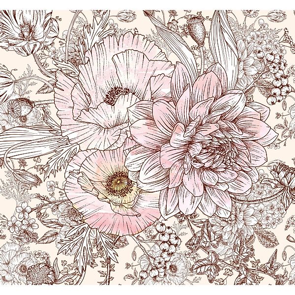 Sanders & Sanders Fototapete Blumen Rosa und Beige 300 x 280 cm 611996