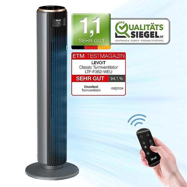 Ob im Wohnzimmer, Homeoffice oder Schlafzimmer – der Levoit Tempsense 36 DC Tower Ventilator sorgt schnell und zuverlässig für frische Luft. Mit bis zu 15 individuell einstellbaren Geschwindigkeitsstufen und vier praktischen Modi (Normal, Turbo, Schlaf und Tempsense) passt er sich flexibel Ihrem Alltag an. Besonders angenehm: Der intelligente Tempsense-Modus erkennt Veränderungen in der Raumtemperatur und regelt die Lüftergeschwindigkeit automatisch – ganz ohne manuelles Nachjustieren. Auch nachts bleibt es angenehm – dank des besonders leisen Schlafmodus mit nur 20 dB(A) ist der Ventilator kaum hörbar. Die Oszillation verteilt die Luft gleichmäßig im Raum (90° seitlich, 60° vertikal) – ideal, wenn mehrere Personen im Raum sind oder die Luft bis in die hintersten Ecken kommen soll. Der Aufbau ist unkompliziert und in wenigen Minuten erledigt, ganz ohne Werkzeug. Für zusätzlichen Komfort lässt sich die Rückseite leicht abnehmen – praktisch beim Reinigen. Mit seinem schlanken, modernen Design fügt sich der Tempsense 36 DC dezent in jeden Raum ein und bringt genau das mit, was man sich von einem Ventilator im Alltag wünscht: Leistung, Ruhe und smarte Funktionen.