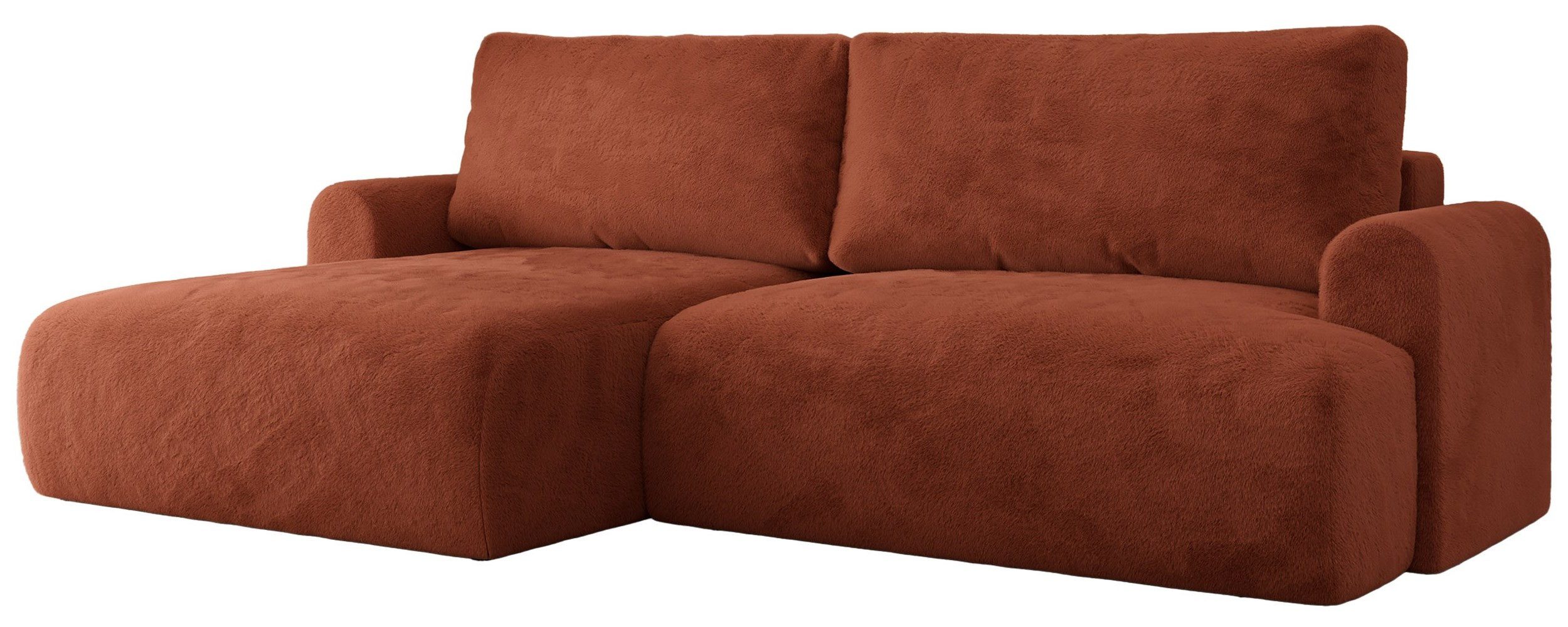 Abmessungen: Breite: 260 cm Tiefe: 150 cm Höhe: 95 cm Sitzhöhe: 47 cm Schlaffläche: 133x220 cm Das Ecksofa TONO L ist die perfekte Wahl für alle, die auf der Suche nach einer stilvollen und funktionalen Sitzlösung für ihr Wohnzimmer sind. Mit seiner L-Form passt es sich optimal an unterschiedliche Raumkonzepte an. Bei der Bestellung können Sie zusätzlich die Variante für die L-förmige Ecke wählen - rechts oder links. Dies gibt Ihnen maximale Flexibilität. Die Sofa L-Form überzeugt mit einer sorgfältig durchdachten Polsterung. Die Kombination aus hochwertigem CME35/45-Schaum und Wellenfedern sorgt für hervorragenden Sitzkomfort und eine gleichmäßige Gewichtsverteilung. Dadurch genießen Sie ein angenehmes Sitzgefühl und optimale Unterstützung – ob Sie auf der modernen Couch entspannen, lesen oder fernsehen. Dank des DL-Mechanismus verwandelt sich das Schlafsofa mit Bettkasten im Handumdrehen in eine großzügige Liegefläche – ideal für Gäste oder den täglichen Gebrauch. Der integrierte Bettkasten bietet zusätzlichen Stauraum für Bettwäsche, Decken oder Kissen, sodass Sie Ihr Wohnzimmer stets ordentlich halten können. Das Ecksofa mit Schlaffunktion und Bettkasten überzeugt nicht nur durch Komfort, sondern auch durch Stabilität. Der massive Holzrahmen mit MDF- und Spanplattenelementen garantiert Langlebigkeit und Widerstandsfähigkeit. Die schwarzen Kunststofffüße, die mit Schrauben befestigt werden, sorgen für eine dezente Optik. Das Sofa mit Schlaffunktion kombiniert modernes Design, hohe Funktionalität und exzellenten Komfort – eine ideale Lösung für Ihr Zuhause. Das Schlafsofa ist aus hochwertigen Materialien gefertigt, darunter sorgfältig ausgewählte Stoffe, die für Langlebigkeit und ein elegantes Erscheinungsbild sorgen. Jedes Produkt vereint Komfort und Ästhetik und erfüllt die Erwartungen der anspruchsvollsten Kunden.