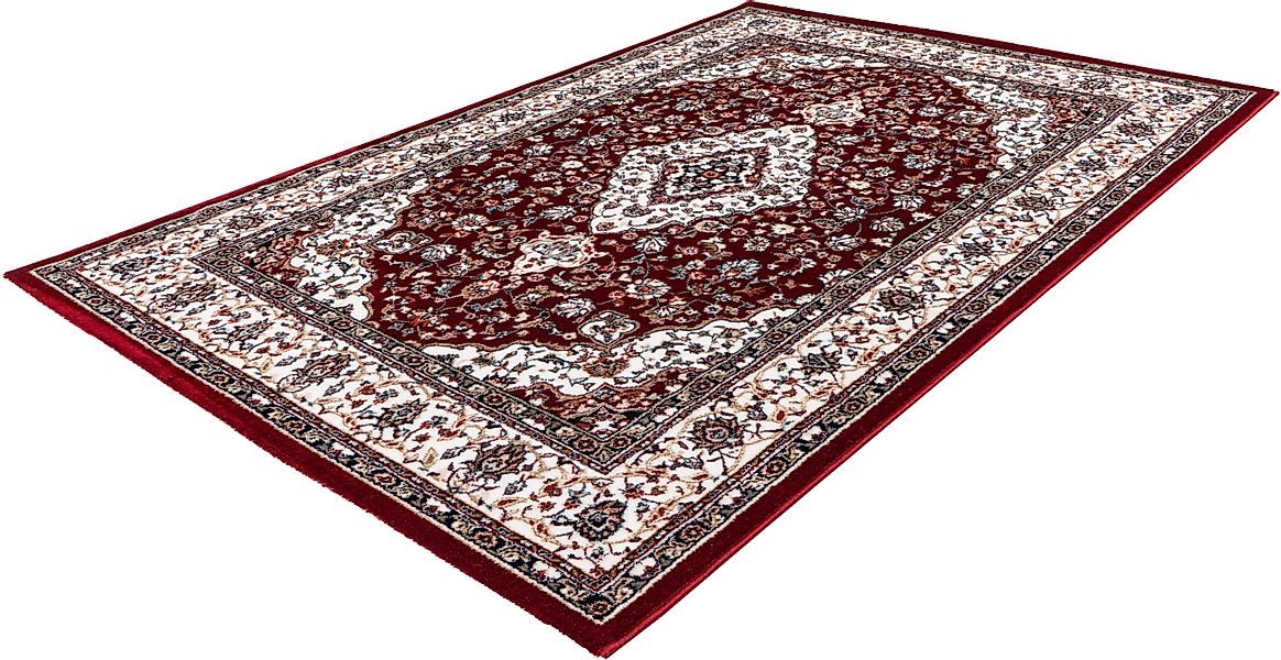 Das Wesen der Tradition ist ihre Beständigkeit, ihre Vertrautheit, ihre Selbstverständlichkeit des Schon-immer-Gewesenen - und deshalb ist es gut. Tatsächlich? Wir sehen es heute kritischer, suchen mehr nach Individualität und unserem persönlichen Ausdruck. Und sehnen uns trotzdem nach einer gewissen Verlässlichkeit. Mit dem Designteppich My Isfahan stellen wir von OBSESSION uns diesem Spannungsfeld behutsam und ohne Ironie. Wir präsentieren klassisch-orientalischen Motiv-Reichtum in gediegener Blüten-Symbolik oder geometrisch durchdachter Ornamentik. Diesem bewährten Ausdrucksreichtum haben wir - sozusagen als Tribut an unser zeitgemäßes Wohngefühl - eine aufregende Struktur aus abgestuften Garnhöhen beigelegt. Durch diese gestalterische Freiheit des aktuellen 3D-Wohntrends gelingt es uns, das Altertümliche zu bewahren und zugleich dem modernen Einrichtungsempfinden anzugleichen. Mit dem Designteppich My Isfahan bietet wir von OBSESSION Ihnen die Möglichkeit einen neuen Glanzpunkt in Ihrem Zuhause zu setzen! Die reichhaltige Palette aus satten, fein kompinierten Farben bietet dabei jedem Geschmack das passende Pendant. Holen Sie sich nach Ihrem Belieben diesen Klassiker in avantgardistischer Interpretation!, Maßangaben: Breite: 40 cm, Länge: 60 cm, Höhe: 11 mm, Konfektion: Fixmaß, Gewicht: 2, Farbe & Material: Farbbezeichnung: rot, Material: Polyester, Rückenmaterial: Jute, Optik/Stil: Design: gemustert, orientalisch, Abschluss der Teppichkante: seitlich gekettelt, Ausstattung & Funktionen: Fußbodenheizungsgeeignet: ja, Trittschalldämmend: ja, Outdoorgeeignet: nein, Rutschhemmend beschichtet: nein, Rutschhemmende Unterlage empfohlen: ja, Pflegehinweis: Pflegehinweise: regelmäßig absaugen, ausklopfen, professionelle Reinigung empfohlen, Wissenswertes: Hinweis Produkt: auch für Saugroboter geeignet, Produktdetails: Markeninformationen: Die Obsession AG steht für stilbewusste Teppiche mit ausdrucksstarken Designs und inspirierenden Farben. Mit einem feinen Gespür für Trends schafft das Unternehmen Produkte, die Wohnräume prägen und Persönlichkeit ausdrücken. Mode ist ihre Obsession – Design und Farben ihre Passion., Anzahl Teile: 1 Stk., Form: rechteckig, Herstellungsart: maschinell gewebt, Materialzusammensetzung: Obermaterial: 100% Wolle