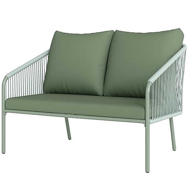 Entspannen Sie stilvoll im Freien mit diesem Outsunny Outdoor-Gartensofa. Robustes Stahlgestell, Rattan-Rückenlehne, bequeme Sitzkissen mit abnehmbaren und waschbaren Bezügen. Verstellbare Fußkappen für Stabilität auf unebenen Oberflächen. Perfekt, um Ihrem Garten eine stilvolle und komfortable Note hinzuzufügen.Beschreibung:Zweisitziges Rattan-Gartensofa für bequemes Sitzen in netter GesellschaftRückenlehne und Armlehnen aus Rattanseilen für immer elegantes GartenelementGepolsterte Sitz- und Rückenkissen für mehr Komfort, mit abnehmbaren und waschbaren BezügenStahlrahmen, pulverbeschichtet für mehr Festigkeit und HaltbarkeitDieses Rattan-Gartensofa verfügt über verstellbare Fußkappen, um die Bank perfekt auszubalancierenMaximale Belastung von 240 kg, Montage erforderlich