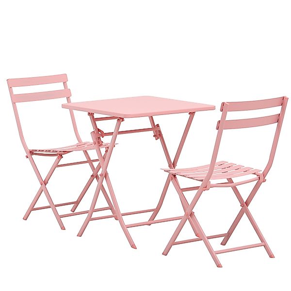 Dieses wunderschöne Bistro-Set, bestehend aus einem klappbaren runden Tisch und 2 klappbaren Stühlen, wird Ihren Außenbereich verschönern, egal ob auf dem Balkon, der Terrasse oder im Garten. Das klassische Design erinnert an die französischen Bistro-Terrassen von früher. Robust, leicht und einfach zu verstauen, passt dieses rote klappbare Gartenset aus pulverbeschichtetem Metall in jeden Raum.Beschreibung:Bistro-Gartenmöbelset für 2 Personen mit insgesamt 3 Teilen: 2 Stühle, 1 runder TischAlle Elemente klappbar: einfache und praktische Aufbewahrung und Transportmöglichkeit bei BedarfStühle mit gebogenen Latten, ergonomisch geneigter Rückenlehne für mehr KomfortRutschfeste Füße (Tisch, Stühle): optimale Stabilität, kein KratzrisikoKompakter runder Tisch, einfach zu bewegen, Maße: Ø 60 x 71H cm, lässt sich selbst in kleinen Bereichen wie Balkonen unterbringenGartenmöbelset ideal für den Außenbereich (Garten, Terrasse, Balkon) und den Innenbereich (Wintergarten)Das Set wird fertig montiert und neu geliefert: Einfach ausklappen und genießen!Achtung: Es wird empfohlen, Ihr Gartenmöbelset während der Wintermonate oder bei längerer Nichtbenutzung zu schützen