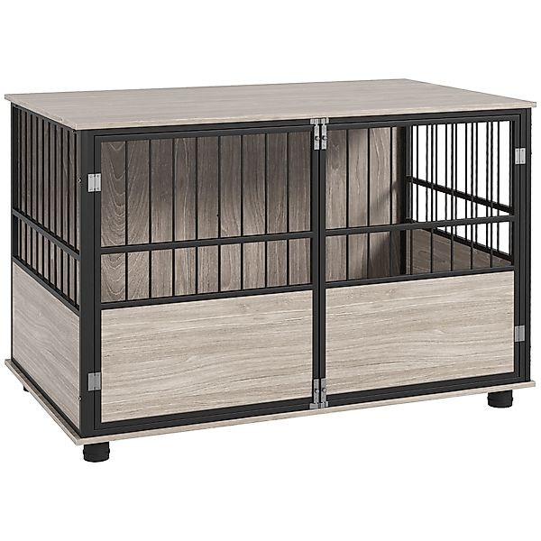 PawHut Hundekäfig für Zuhause, Hundehütte, Rutschfest Haustierkäfig, Hundebox mit Türen, Hundehaus für bis große Hunde, Walnuss, 100 x 60 x 68 cm Aosom