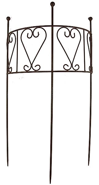 Unser Staudenhalter vereint mit romantischer Eleganz. Die halbrunde Form bietet eine harmonische Kulisse für Ihre Gartenstauden und betont ihre Schönheit auf stilvolle Weise. Verziert mit filigranen Herzen, fügt sich dieses dekorative Element nahtlos in jede Gartenlandschaft ein und verleiht ihr einen Hauch von Vintage-Romantik. Entdecken Sie mit diesem stilvollen Accessoire eine neue Dimension der Gartenästhetik. Abmessungen ca.: Höhe mit Erdspießen: ca. 72 cm Höhe ohne Erdspieße: ca. 20cm Breite: ca. 41 cm Material: Metall