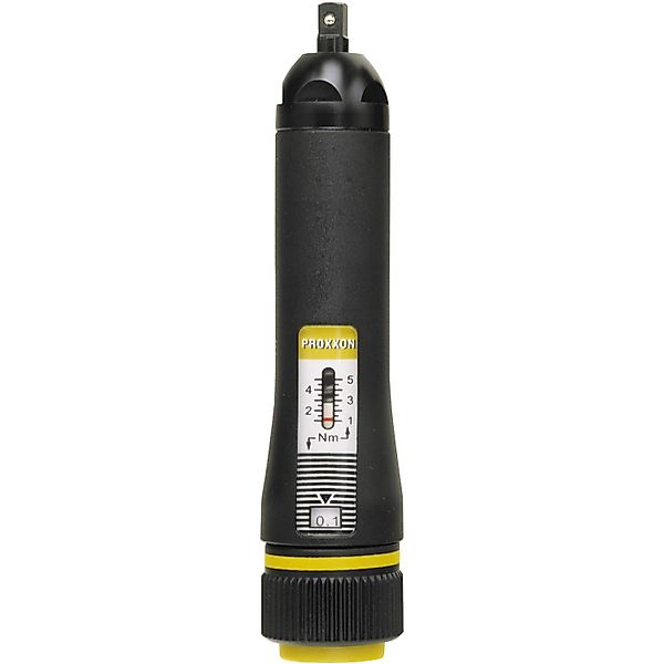 Der Drehmomentschrauber MicroClick MC 5, (6,3 mm - 1/4 Zoll) für 1 - 5 Nm ist ideal für Reparaturen und zur Montage hochwertiger Komponenten. Durch Drehen des gerändelten Ringes am Griffende kann der Drehmoment eingestellt werden. Der gewünschte Wert wird durch Einschub des Ringes fixiert. Beim Anziehen von Schrauben sorgt die automatische Kurzauslösung dafür, dass ein deutlich hör- und fühlbares Click-Signal erzeugt wird, sobald das vorgewählte Drehmoment erreicht wird. Mit gut lesbarer Fensterskala und zusätzlicher Mikro-Skala zur Feinjustierung (1 Drehung= 1 Nm). Der Skalenring ist mit einer 0,10 Nm-Teilung ausgestattet. Der MicroClick MC 5 verfügt über einen 6,3 mm (1/4 Zoll)-Vierkant für Steckschlüsseleinsätze und wird mit einem aufsteckbarem Adapter mit Federhülse zur formschlüssigen Haltung von 6,3 mm (1/4 Zoll)-Standardbits geliefert (Genauigkeit +/- 6%). Ein praktischer Kunststoffkoffer zum Aufbewahren gehört ebenfalls zum Lieferumfang.