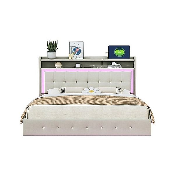 REDOM Polsterbett mit USB-Anschlüssen, RGB-LED-Licht und hydraulischem Stauraum (Stauraumbett mit verstellbarem Kopfteil, Funktionsbett 180x200 cm), Inklusive Matratzeotto.de