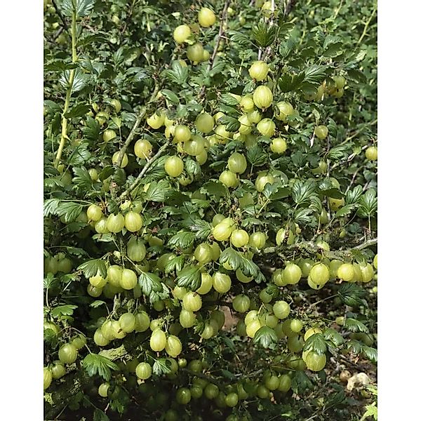 Ribes uva-crispa Hinnonmäki Gelb, die gelbe Stachelbeere, verbindet hohen Ertrag mit dekorativem Wuchs und aromatischer Fruchtqualität. Diese bewährte Sorte trägt mittelgroße, goldgelbe Beeren mit dünner Schale und ausgewogen süß-säuerlichem Geschmack, ideal zum Naschen, für Kuchen, Kompott und Konfitüre. Die unscheinbaren, grünlichen Blüten erscheinen im Frühjahr, das frischgrüne, gelappte Laub bleibt bis in den Herbst vital und unterstreicht den ordentlichen, kompakten Aufbau der Krone, während die kräftigen, leicht bestachelten Triebe für eine natürliche, formstabile Silhouette sorgen. Als Obstgehölz und Beerenstrauch macht Hinnonmäki Gelb im Naschgarten, im Obstbeet und als Solitär im Vorgarten eine ebenso gute Figur wie als robuste Kübelpflanze auf Balkon und Terrasse; auch in einer locker geführten Beerenhecke oder in der Gruppenpflanzung neben anderen Fruchtsträuchern kommt sie hervorragend zur Geltung. Bevorzugt wird ein sonniger bis halbschattiger Standort mit humosem, durchlässigem, gleichmäßig frischem Boden; Staunässe sollte vermieden, eine gleichmäßige Wasserversorgung während der Fruchtbildung gewährleistet werden. Ein jährlicher, moderater Auslichtungs- und Verjüngungsschnitt nach der Ernte fördert Ertrag, Beerengröße und die luftige Krone, eine Gabe reifen Komposts im Frühjahr unterstützt das Wachstum. Die Sorte gilt als robust, winterhart und weitgehend mehltauunempfindlich, ist selbstfruchtbar und liefert zuverlässig von Juli bis August ihre sonnengelben Früchte. Als vielseitiger Gartenstrauch vereint sie Nutzwert und Zierwert und passt in moderne wie klassische Pflanzkonzepte.