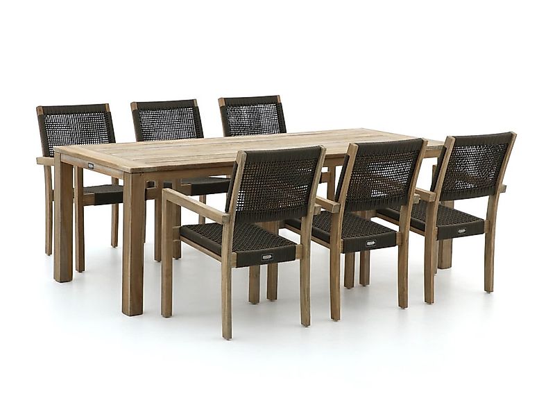 ROUGH Batang/ROUGH-S Gartenmöbel-Set 6 Sitzplätze Das ROUGH Batang/ROUGH-S Gartenmöbel-Set ist eine robuste Wahl für Ihren Außenbereich. Mit seinem Tisch aus Old Teak Greywash und den Stühlen mit Rope-Sitzflächen in einem ansprechenden Moosgrün bietet es nicht nur Platz für sechs Personen, sondern auch eine stilvolle Ergänzung für Ihren Garten. Die Stühle sind stapelbar, was Ihnen das Verstauen erleichtert, wenn sie nicht gebraucht werden. Das Set ist gemacht, um lange zu halten und hält jedem Wetter stand, sodass Sie viele Jahre Freude daran haben werden. Eigenschaften * Robustes Teakholz: Der Tisch und das Gestell der Stühle sind aus Teakholz gefertigt, das jedem Wetter trotzt und für Stabilität sorgt. * Schnelltrocknendes Rope: Die Sitzflächen sind aus fest geflochtenem Rope, das schnell trocknet und auch bei Sonneneinstrahlung angenehm kühl bleibt. * Platzsparend stapelbar: Die Stühle lassen sich einfach stapeln, was Ihnen hilft, Platz zu sparen, wenn sie nicht in Gebrauch sind.