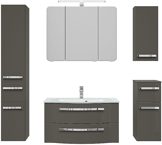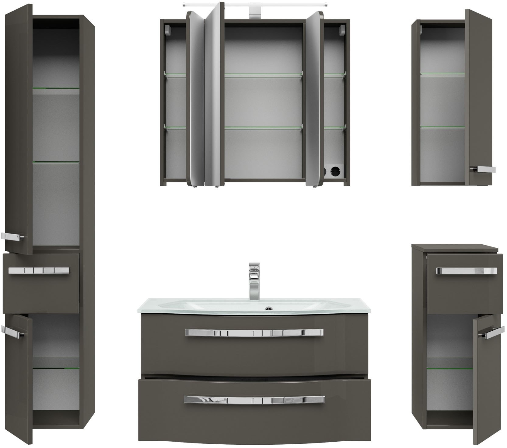 Saphir Badmöbel-Set "Serie 4005, vormontiert, Glaswaschbecken, Spiegelschrank" Set, 6 Stk. tlg. Badezimmer-Set mit Unterschrank, Hängeschrank, Hochschrank, Türdämpfer