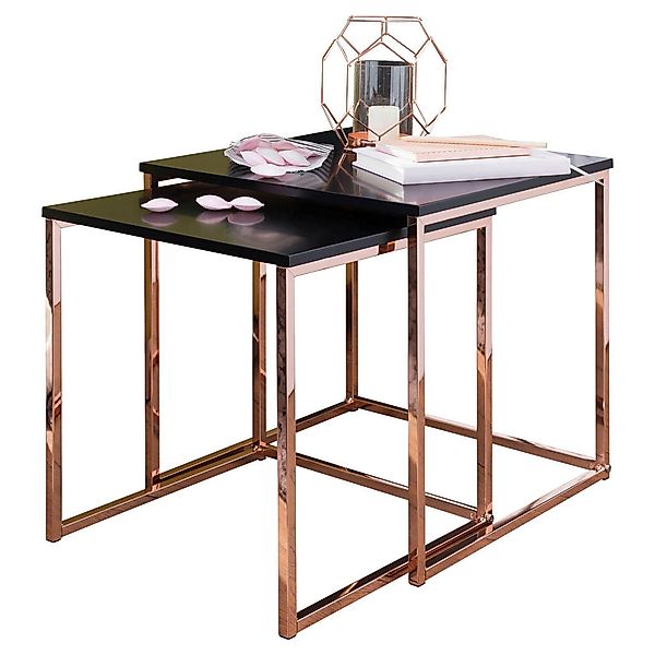 Satztisch Cala Schwarz Kupfer Beistelltisch Mdf Metall Couchtisch Set Aus 2 Tischen Kleiner Wohnzimmertisch Metalltisch Mit Holzplatte Ablagetisch Modern
