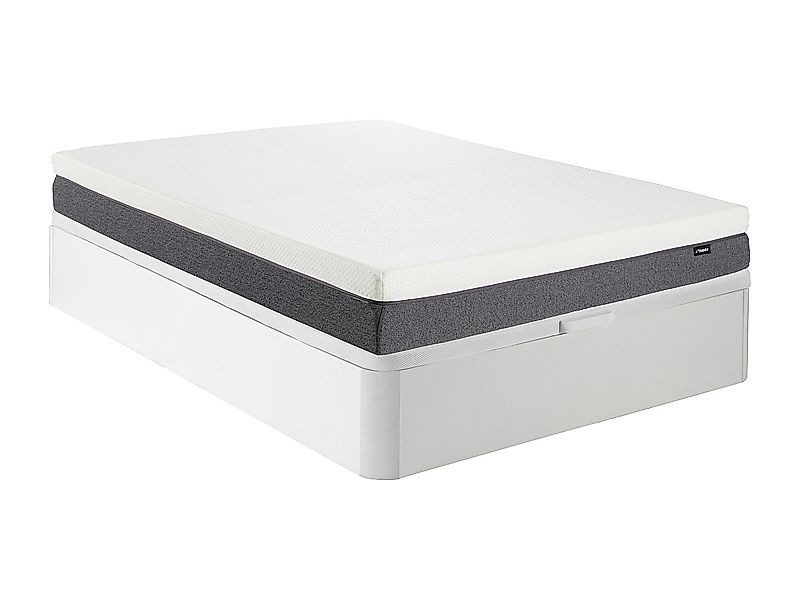 Entscheiden Sie sich für die Schaumstoffmatratze SOLAK von YSMÉE mit einer Gesamtdicke von 30 cm für einen erholsamen Schlaf. Mit ihrem antibakteriellen Bezug und dem atmungsaktiven 3D-Streifen sorgt diese Matratze für gesunde Nächte.1 x Standardmatratze SOLAKProduktdetails Matratzentechnologie (Kern): Kaltschaum Technologie (Raumgewicht): 25 kg/m³ Mit oder ohne Toppers: Mit Topper Matratze (Auflage): Komfortschaum Dichte (Auflageseite): 16 kg/m³ Liegekomfort: Fest Matratzenfüllung: Polyesterfasern Dichte (Füllung): 200 g/m2 Matratzenbezug (Material): Polyester Wendbar Sommerseite/Winterseite, Atmungsaktives Klimaband, 4 Tragegriffe Farbe (Schattierungen): Weiß Material (Präzision): 100 % Polyester Größe (Liegefläche): 160 x 200 cm Anzahl Personen: 2 Personen Unterstützung: Härtegrad 2 (50kg bis 75kg) Behandlung: Antibakteriell Garantie: 5 Jahre Komprimiert/gerollt: JaCa.-Maße Breite: 200 cm Höhe: 30 cm Tiefe: 160 cm Matratzenstärke (cm): 30 cm Kernhöhe: 27 cm1 x Bettgestell mit Lattenrost ASTHENISProduktdetails Farbe (Schattierungen): Weiß Material (Präzision): 100 % Polyester Material (Füße): Holz Struktur: Holz Größe (Liegefläche): 160 x 200 cm Anzahl Personen: 2 Personen Mit Füßen Technologie (Lattenrost): Fester Lattenrost Anzahl der Federleisten: 10 Federleisten Material der Latten: Holz (Fichte) Produktserie: Good for Planet Garantie: 5 Jahre Ökologische Kriterien: Hergestellt in Frankreich Maximale Traglast: 200 kg Montiert geliefert (außer Beine und/oder Griffe)Ca.-Maße Breite: 200 cm Höhe: 31 cm Tiefe: 160 cm Höhe der Füße: 20 cmVersanddetailsLieferzeit und Versandkosten werden Ihnen auch in Ihrem Warenkorb angezeigt.Bitte überprüfen Sie bei der Annahme der Lieferung die Anzahl der Pakete.Paket1 x Standardmatratze SOLAKPaket Nr.1: Breite 105 cm, Tiefe 45 cm, Höhe 45 cm, Gewicht 28 kg, 1 x Bettgestell mit Lattenrost ASTHENISPaket Nr.1: Breite 202 cm, Tiefe 162 cm, Höhe 12 cm, Gewicht 23 kg,