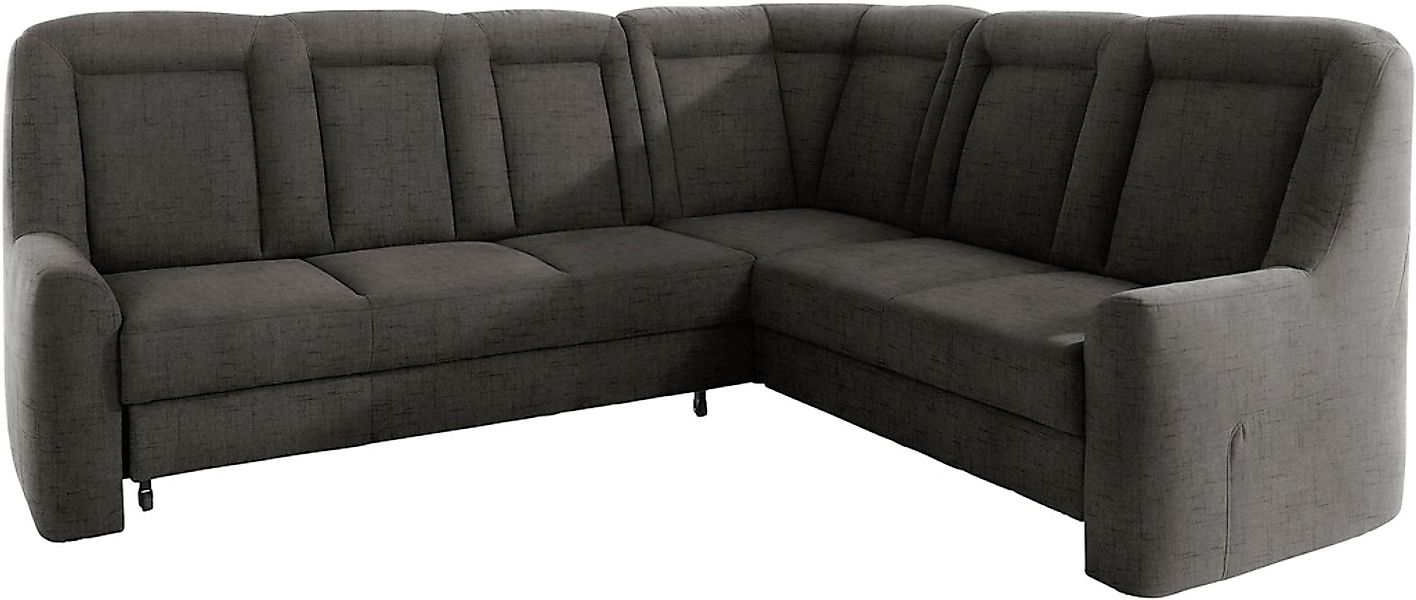 Ausstattung & Funktionen: Stellvariante: langer Schenkel rechts, Ausführung Rückenlehne: gepolstert, Ausführung Sitzfläche: gepolstert, Ausführung Armlehnen: gepolstert, Polsteraufbau: Federkern, Wellenunterfederung, Anzahl Füße: 8 Stk., Art Füße: Gleiter, Raumgewicht: 30 kg/m³, Anzahl Sitzflächen: 6 Stk., Anzahl Armlehnen: 2, Maßangaben: Breite: 257 cm, Tiefe: 217 cm, Sitzhöhe: 48 cm, Tiefe Sitzfläche: 55 cm, Breite Armlehnen: 19 cm, Tiefe Armlehnen: 86 cm, Höhe Armlehnen: 58 cm, Breite Armlehne links: 19 cm, Tiefe Armlehne links: 86 cm, Höhe Armlehne links: 58 cm, Breite Armlehne rechts: 19 cm, Tiefe Armlehne rechts: 86 cm, Höhe Armlehne rechts: 58 cm, Breite Liegefläche: 121 cm, Länge Liegefläche: 206 cm, Breite Bettkasten: 112 cm, Tiefe Bettkasten: 56 cm, Höhe Bettkasten: 16 cm, Höhe Füße: 2 cm, Bodenfreiheit: 2 cm, Tiefe Hauptelement: 89 cm, Belastbarkeit Stauraum maximal: 10 kg, Breite Sitzfläche langer Schenkel: 206 cm, Breite Sitzfläche kurzer Schenkel: 166 cm, Gewicht: 149 kg, Belastbarkeit pro Sitzplatz: 110 kg, Höhe Liegefläche: 48 cm, Hinweis Maßangaben: Alle Angaben sind ca.-Maße., Material: Bezug: Struktur fein, Abriebfestigkeit Bezug: 4-5 (gut - sehr gut), Pillingbildung Bezug: 4 (gering), Material Untergestell: Massivholz, Spanplatte, Material Füße: Kunststoff, Materialhinweis: Rückseite Originalbezugsqualität, Information Materialzusammensetzung: 100 % Polyester, Scheuerbeständigkeit Bezug: 45.000 Scheuertouren, Farbe: Farbbezeichnung: anthrazit, Farbe Füße: schwarz, Allgemein: Ausführung: mit Bettfunktion, mit Schubkasten, Lieferung & Montage: Aufbauhinweise: einfache Selbstmontage mit Aufbauanleitung, Lieferumfang: Der Artikel wird ohne Dekoration geliefert., Lieferzustand: teilmontiert, nur einhaken und Füße montieren, Hinweise: Pflegehinweise: feucht abwischbar, Pflegehinweise Bezug: abstaubbar, abwischbar, feucht abwischbar, Qualitätssiegel: Das Goldene M, Gütesiegel der DGM, Wissenswertes: Art Herstellung: handgefertigt